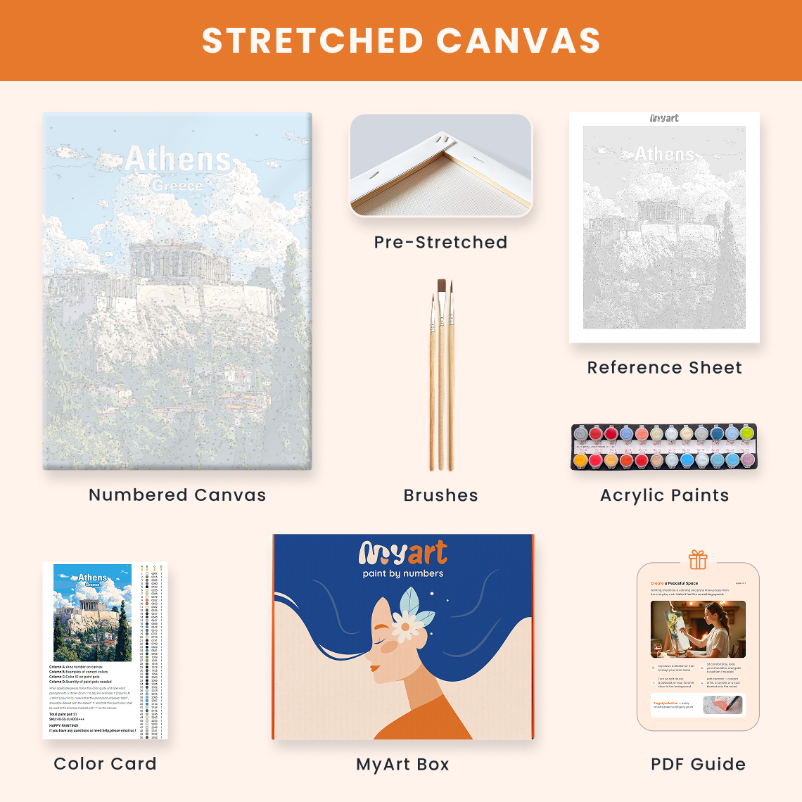 - Premium acrylic paint set (pre-mixed and numbered)