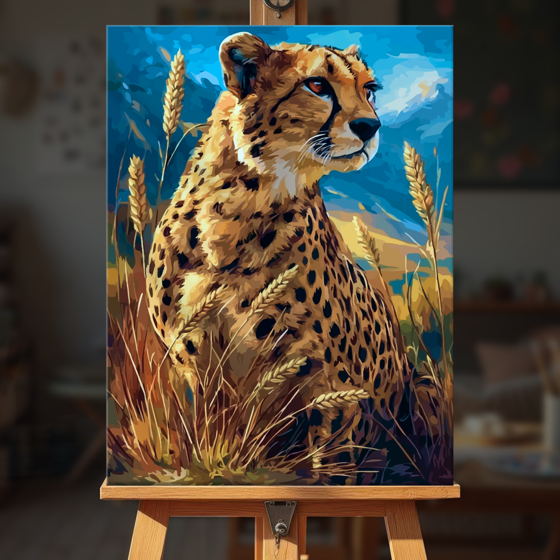 The canvas is pre-stretched on a wooden frame — ready to hang when finished.