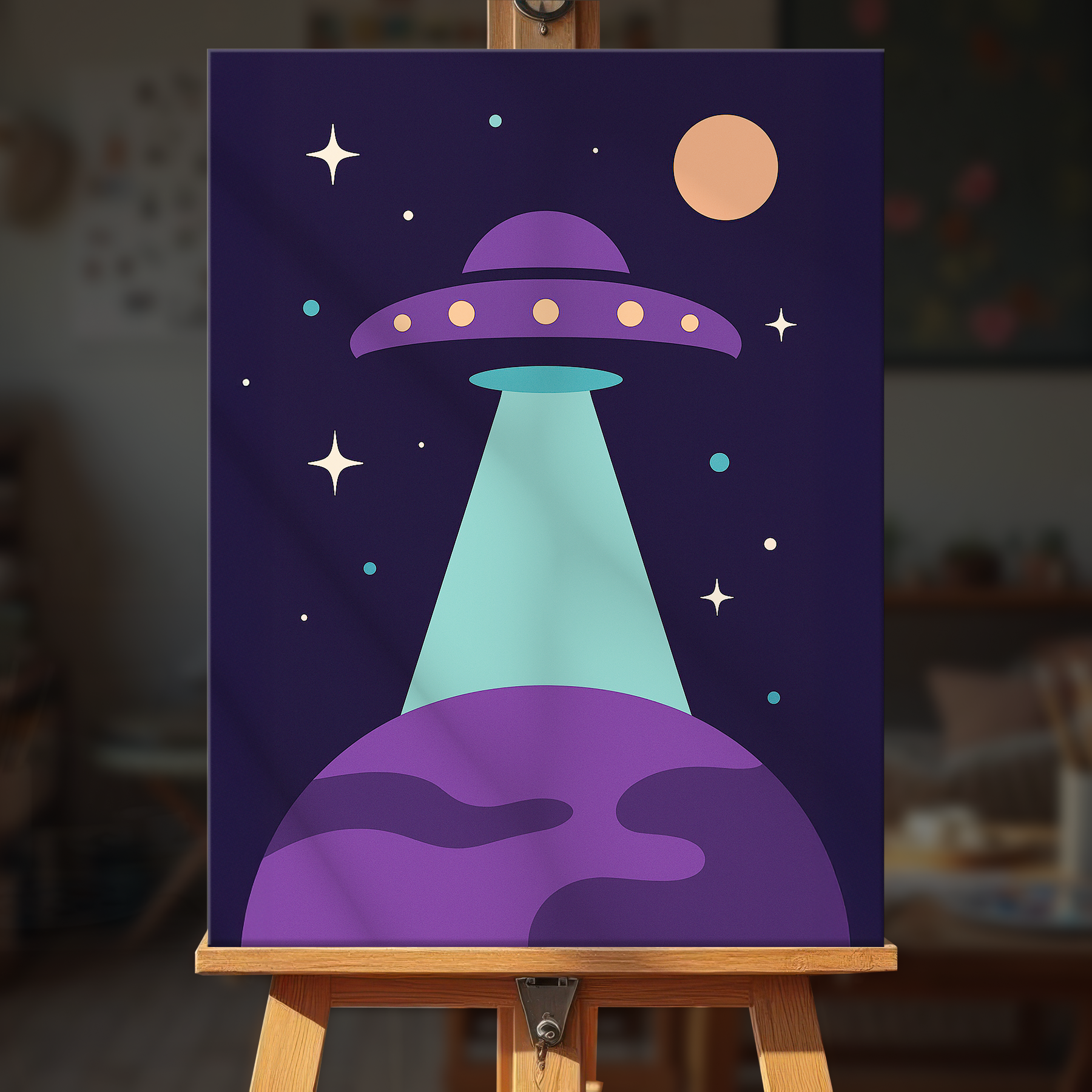 The canvas is pre-stretched on a wooden frame — ready to hang when finished.
