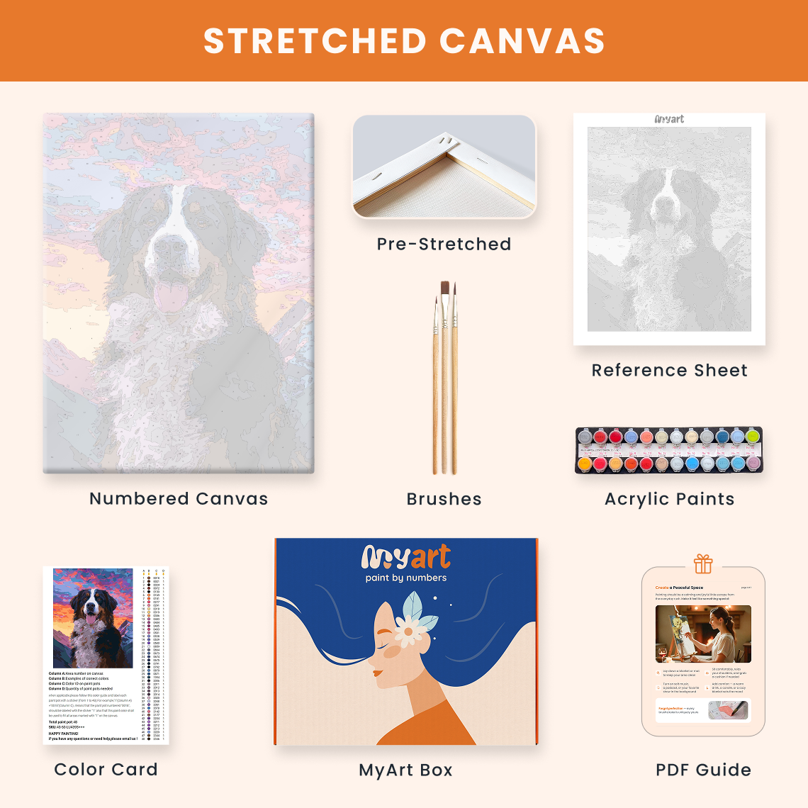 - Premium acrylic paint set (pre-mixed and numbered)