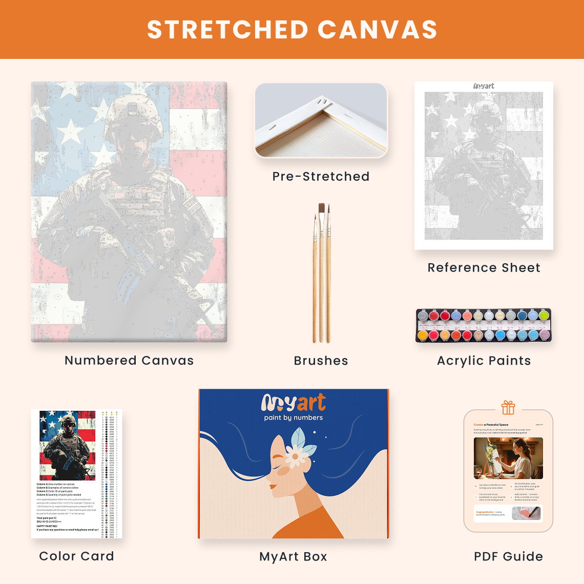 - Premium acrylic paint set (pre-mixed and numbered)