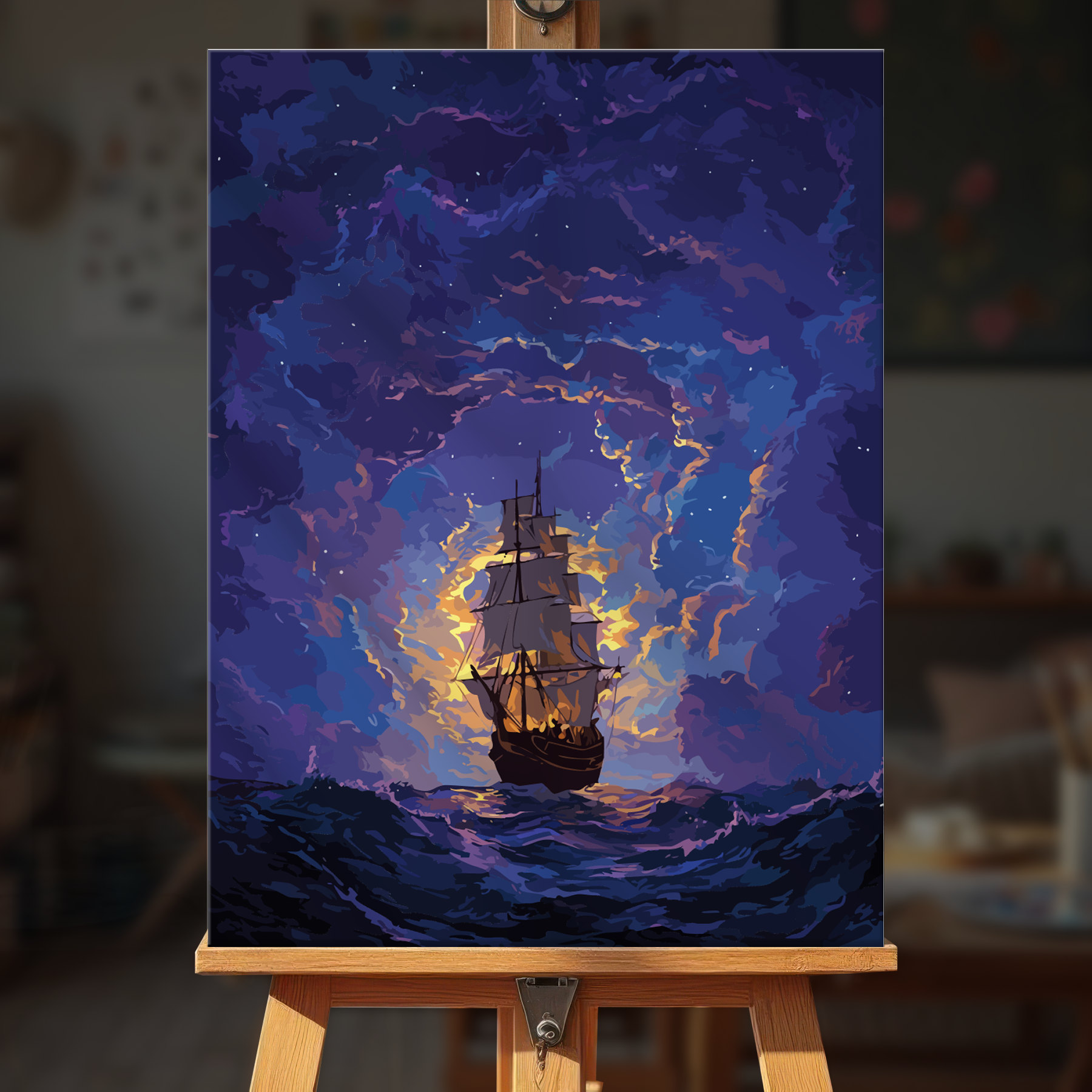 The canvas is pre-stretched on a wooden frame — ready to hang when finished.