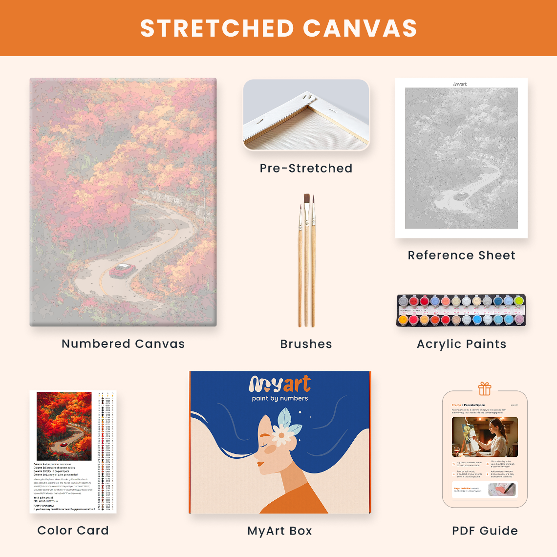 - Premium acrylic paint set (pre-mixed and numbered)