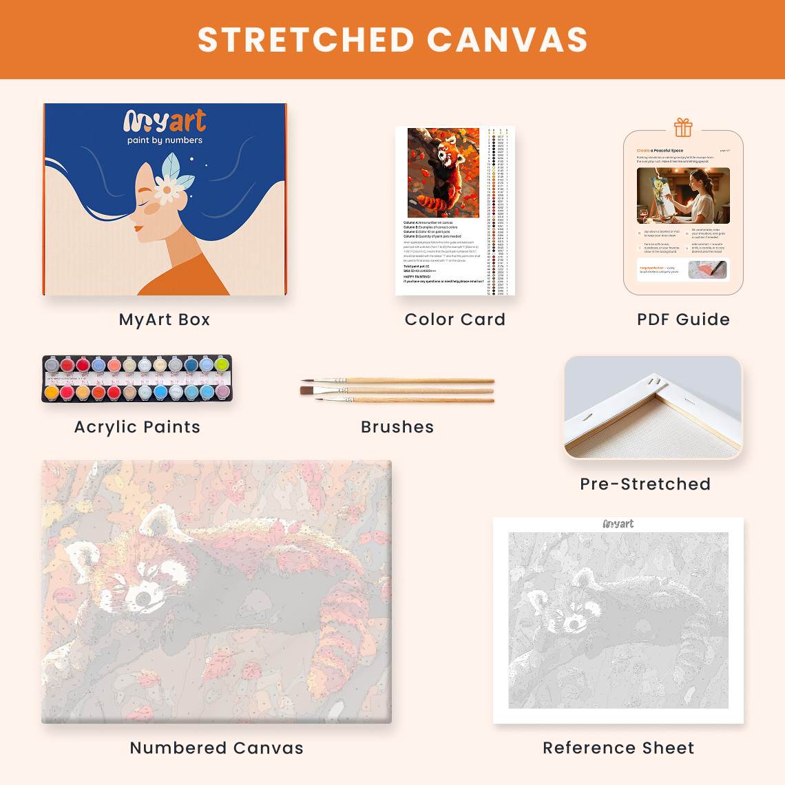 - Premium acrylic paint set (pre-mixed and numbered)