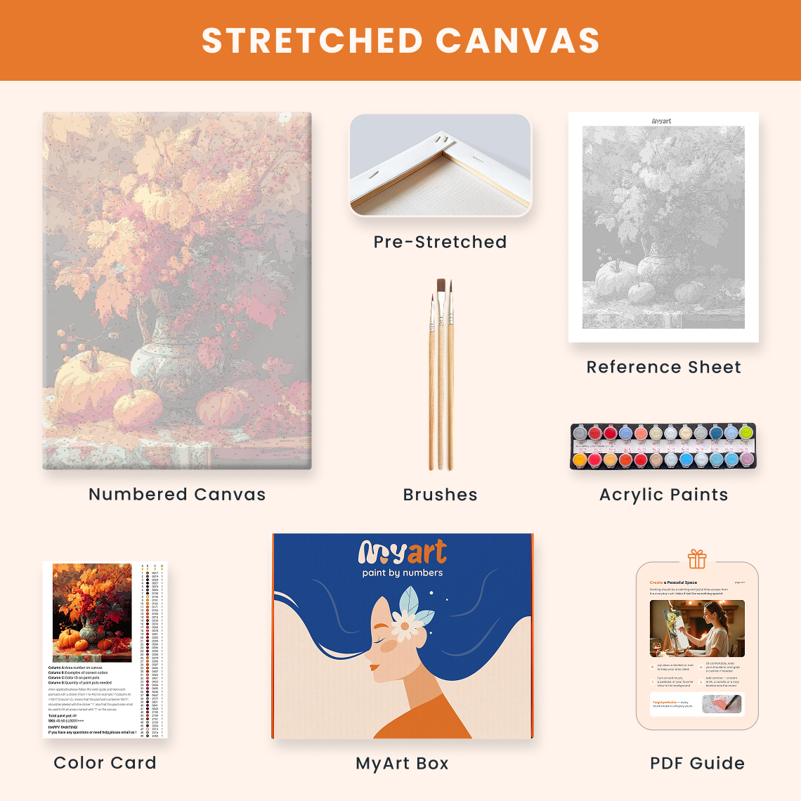 - Premium acrylic paint set (pre-mixed and numbered)
