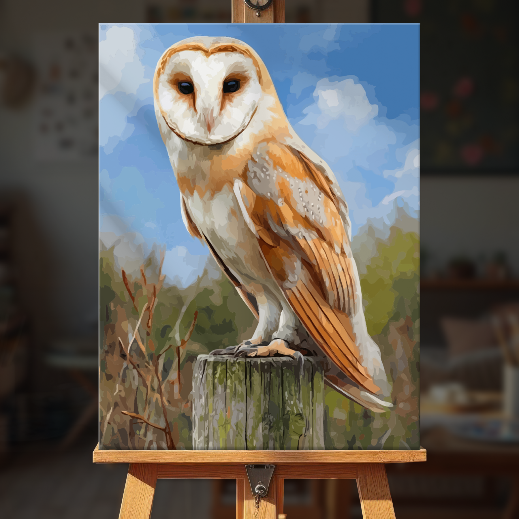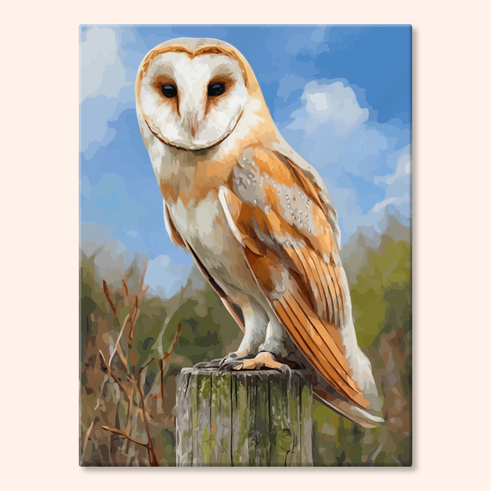 The canvas is pre-stretched on a wooden frame — ready to hang when finished.
