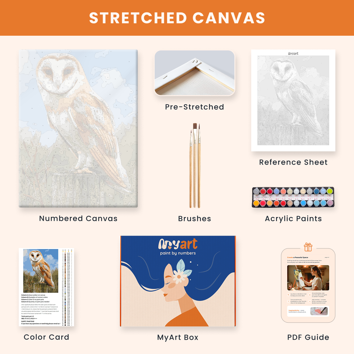 - Premium acrylic paint set (pre-mixed and numbered)