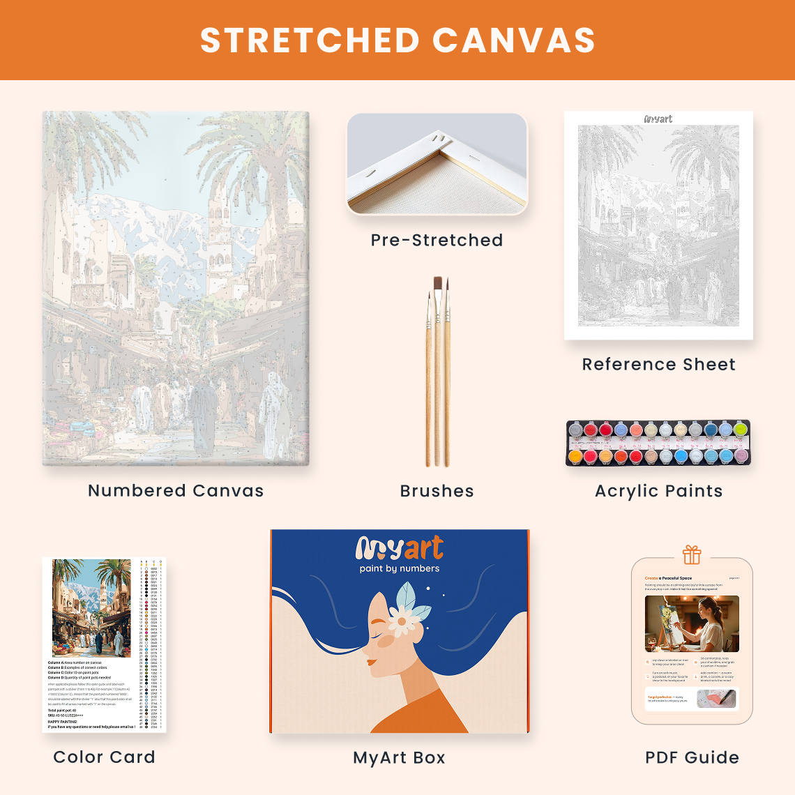 - Premium acrylic paint set (pre-mixed and numbered)