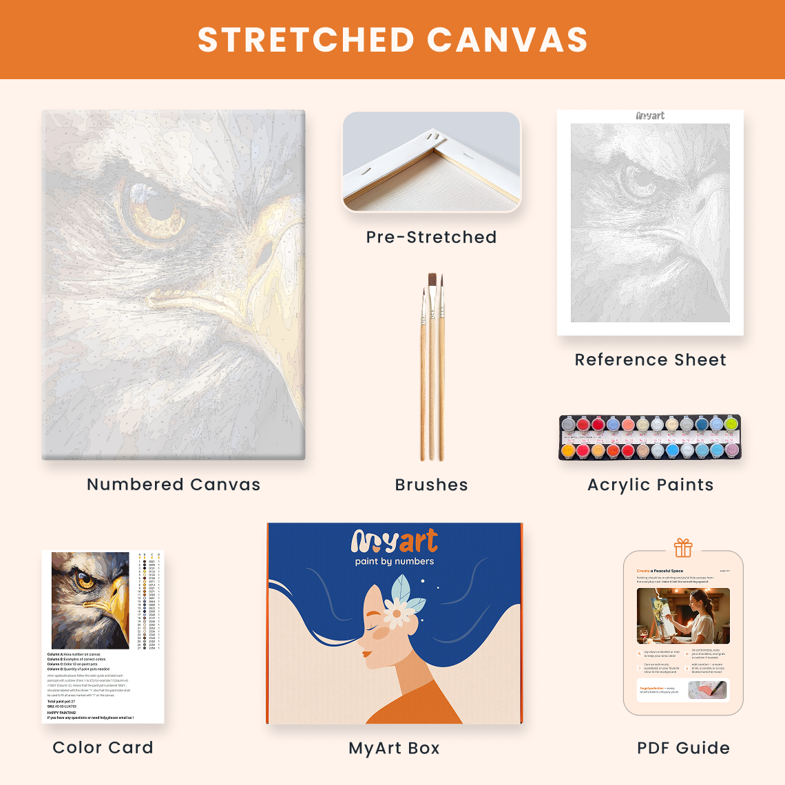 - Premium acrylic paint set (pre-mixed and numbered)