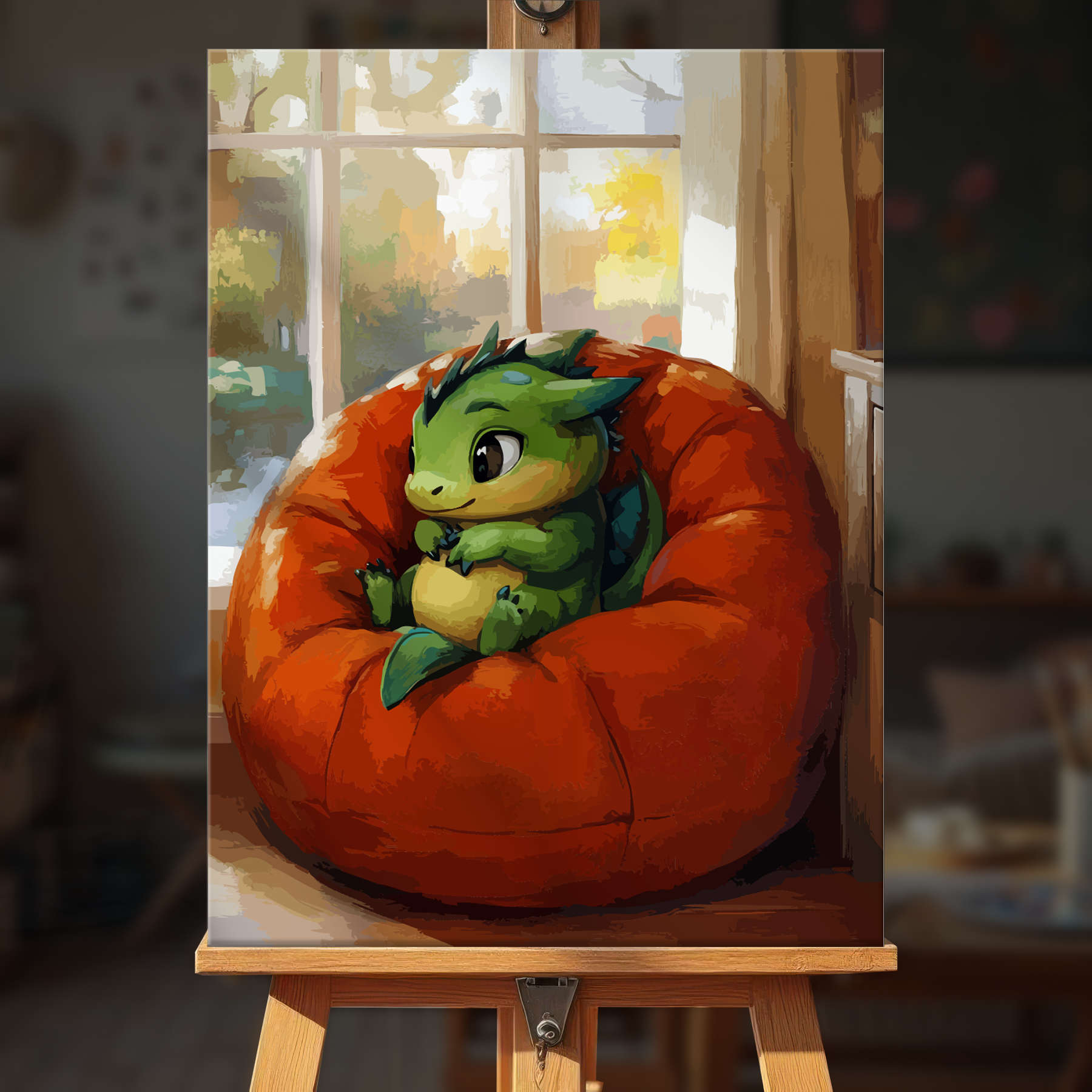 The canvas is pre-stretched on a wooden frame — ready to hang when finished.