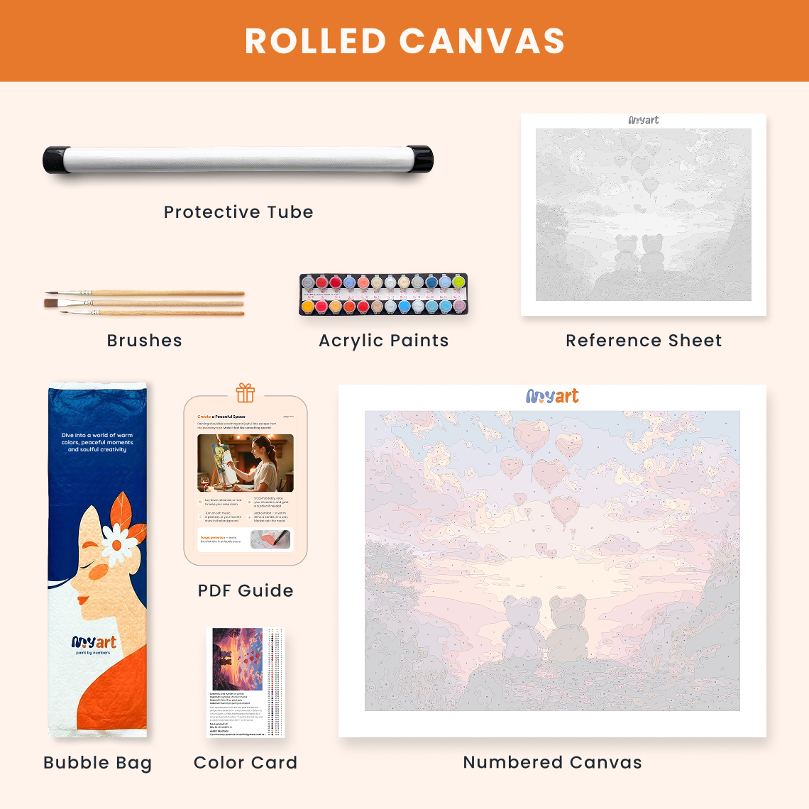 - Premium acrylic paint set (pre-mixed and numbered)