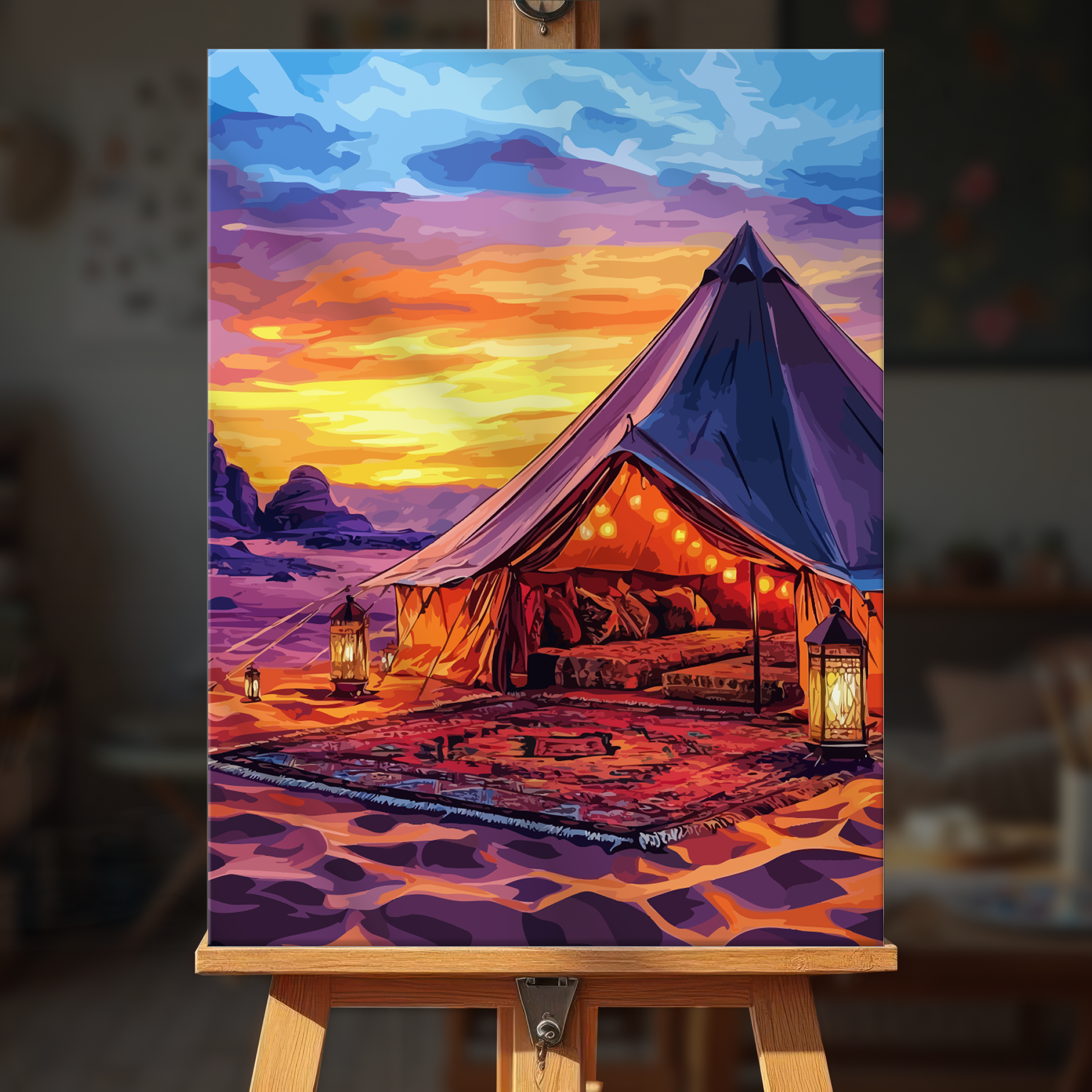 The canvas is pre-stretched on a wooden frame — ready to hang when finished.