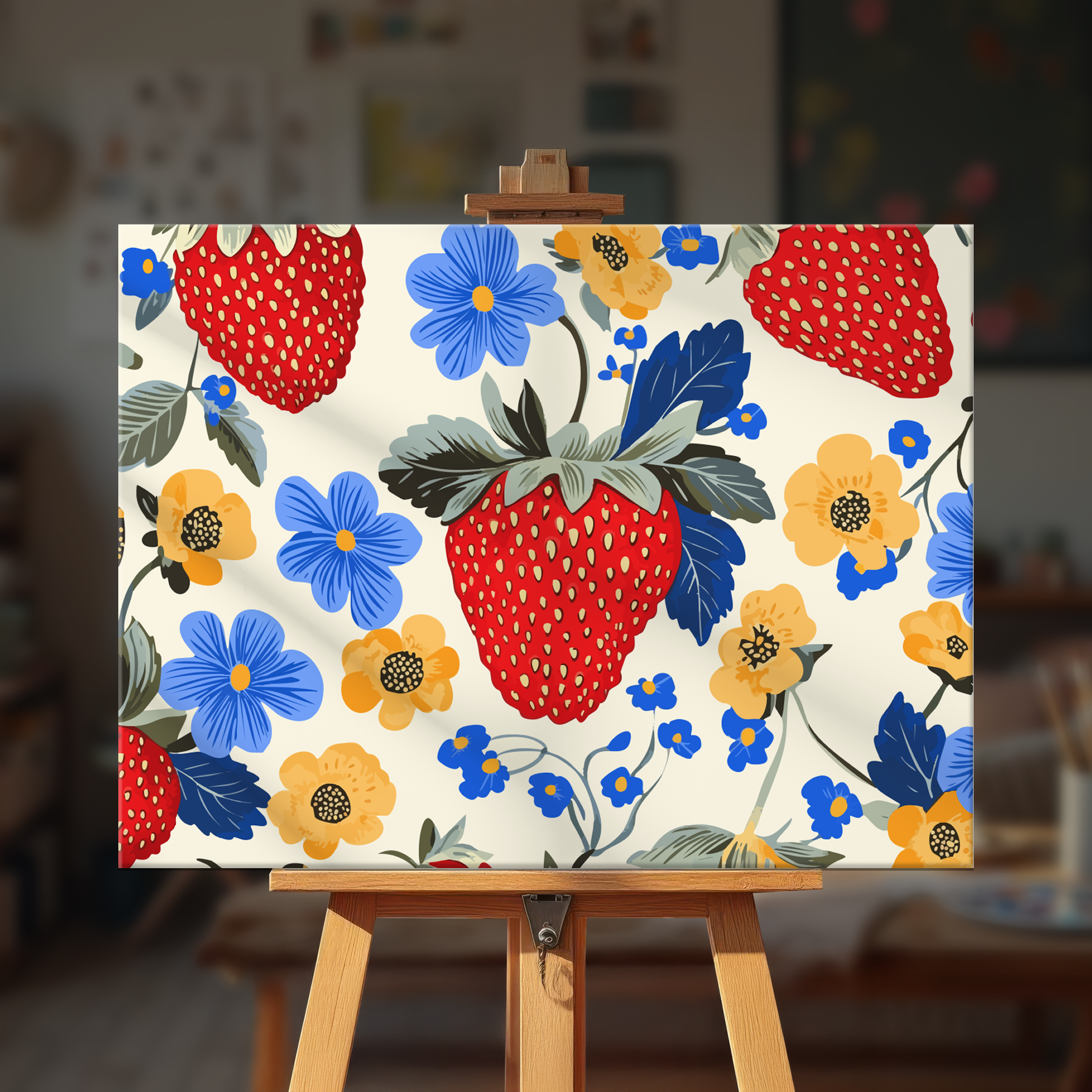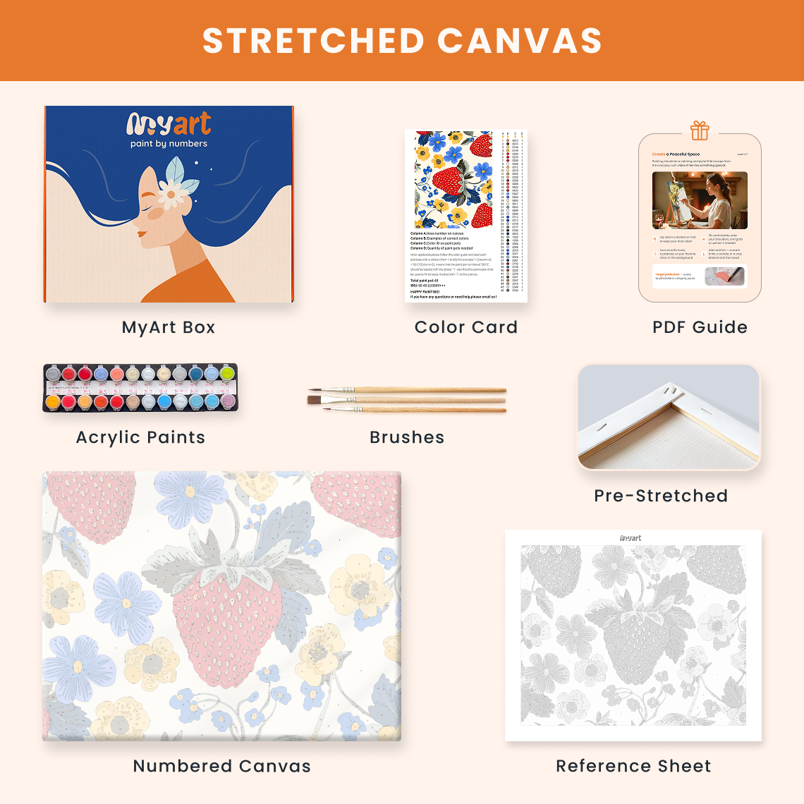 The canvas is pre-stretched on a wooden frame — ready to hang when finished.