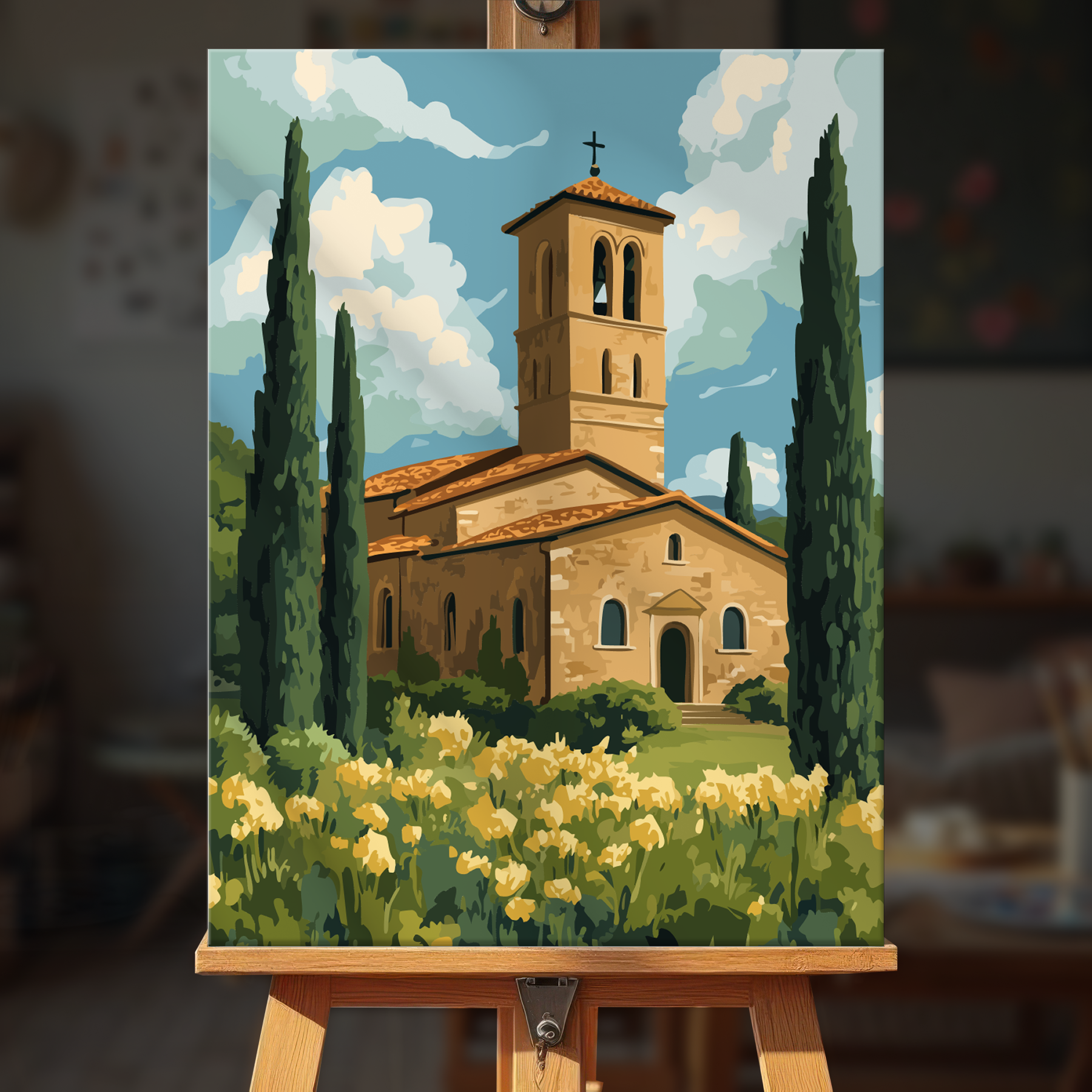The canvas is pre-stretched on a wooden frame — ready to hang when finished.