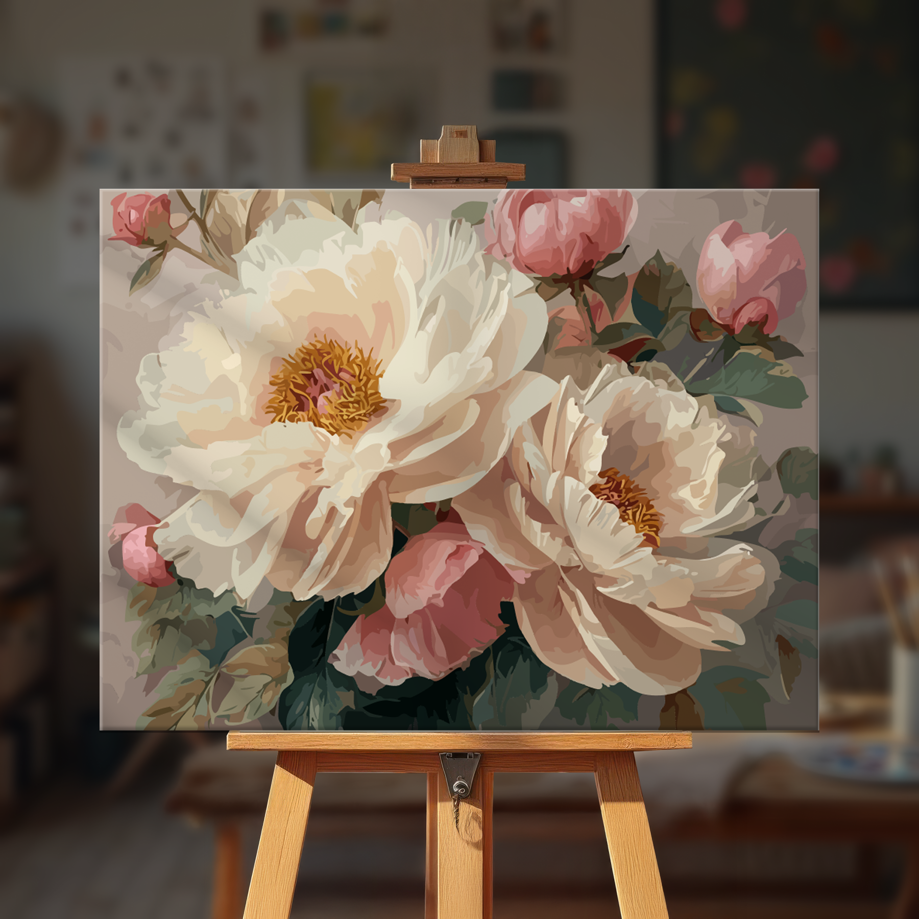 The canvas is pre-stretched on a wooden frame — ready to hang when finished.