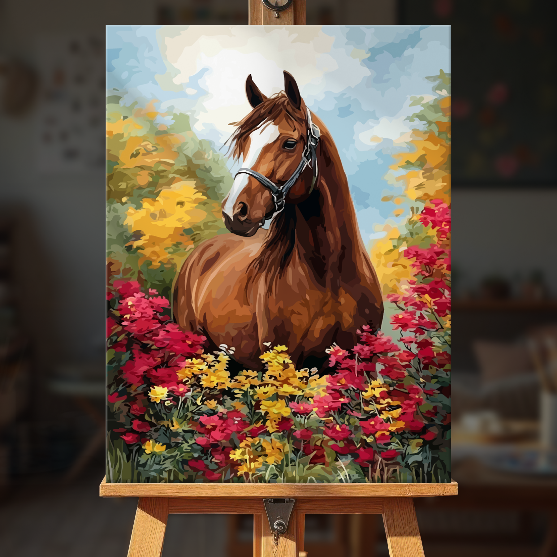 The canvas is pre-stretched on a wooden frame — ready to hang when finished.