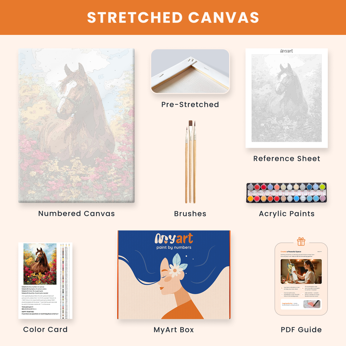 - Premium acrylic paint set (pre-mixed and numbered)