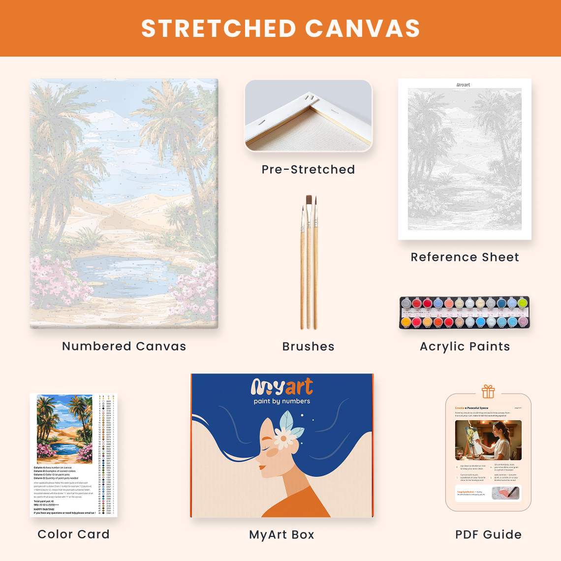 - Premium acrylic paint set (pre-mixed and numbered)