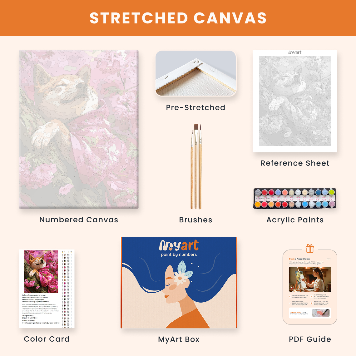 - Premium acrylic paint set (pre-mixed and numbered)