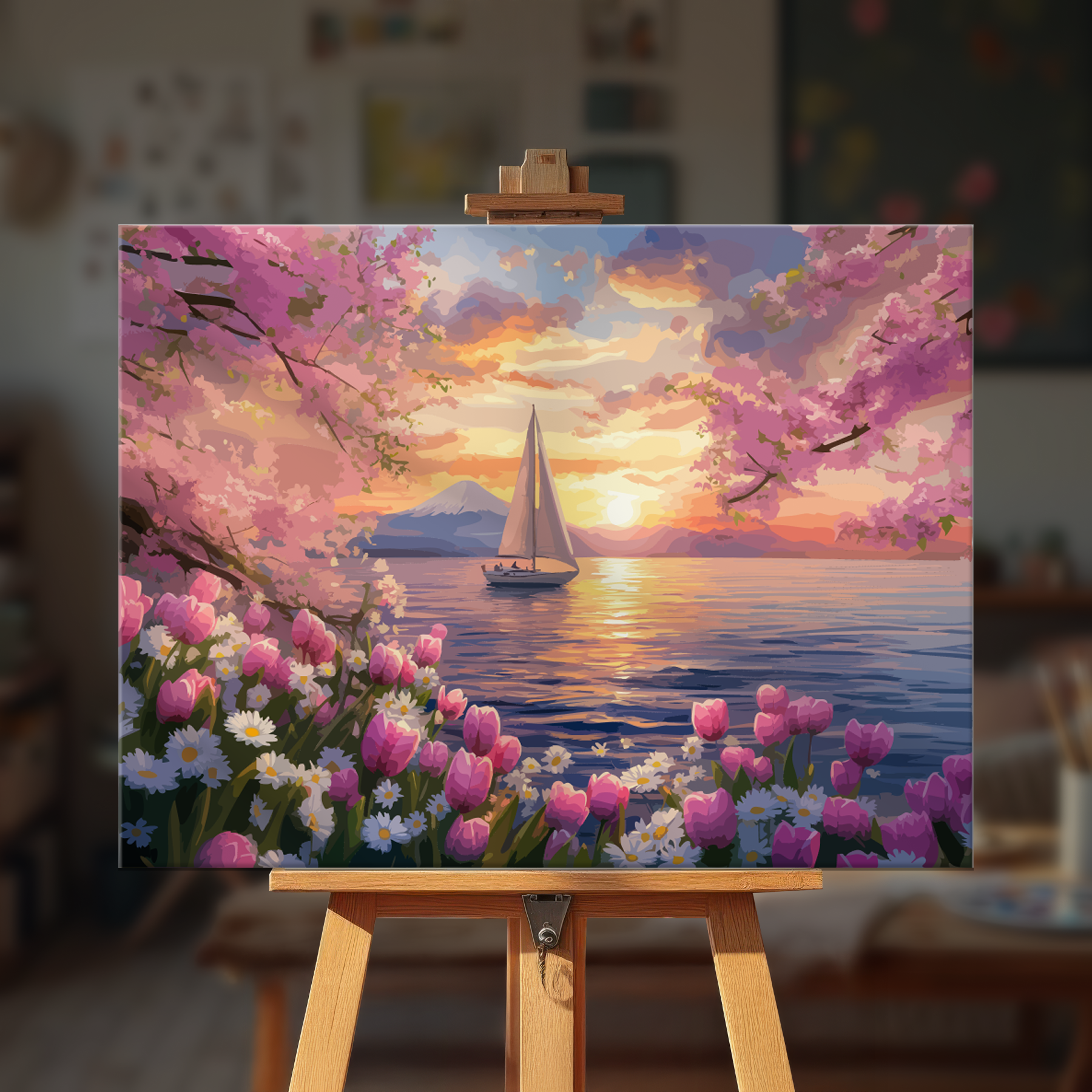 The canvas is pre-stretched on a wooden frame — ready to hang when finished.