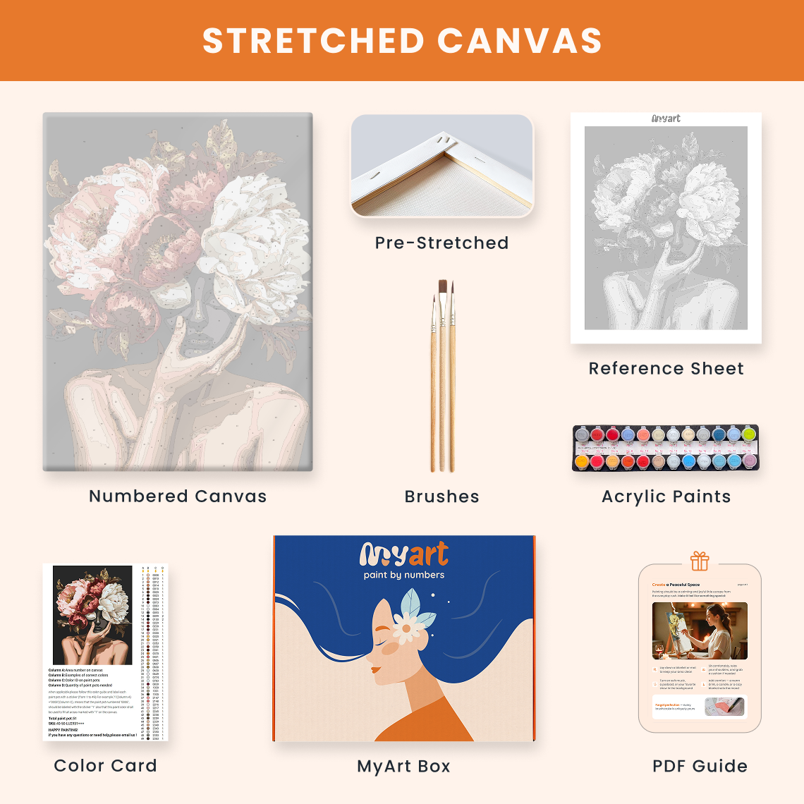 - Premium acrylic paint set (pre-mixed and numbered)