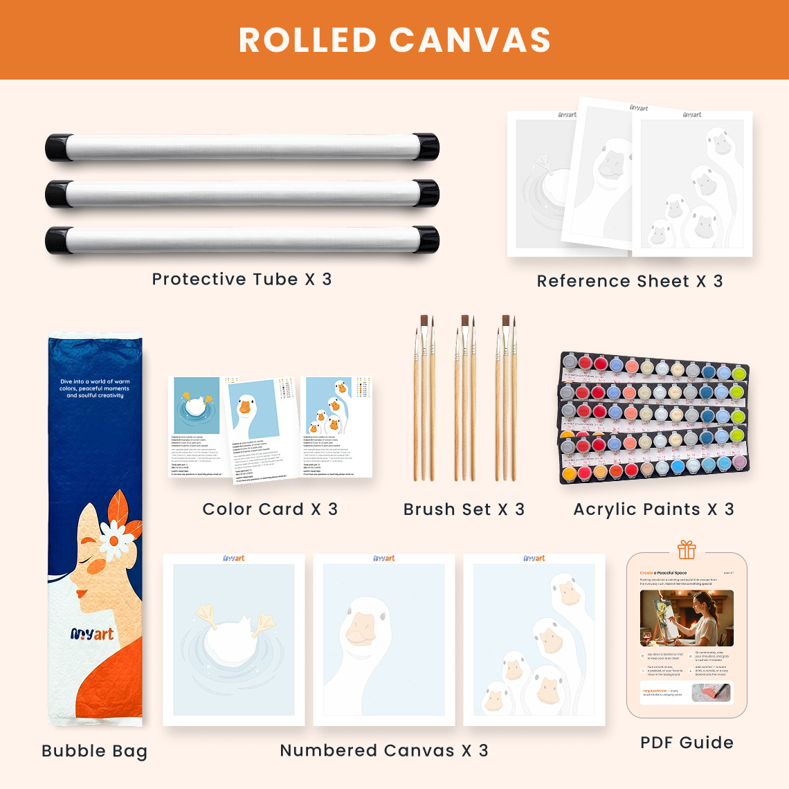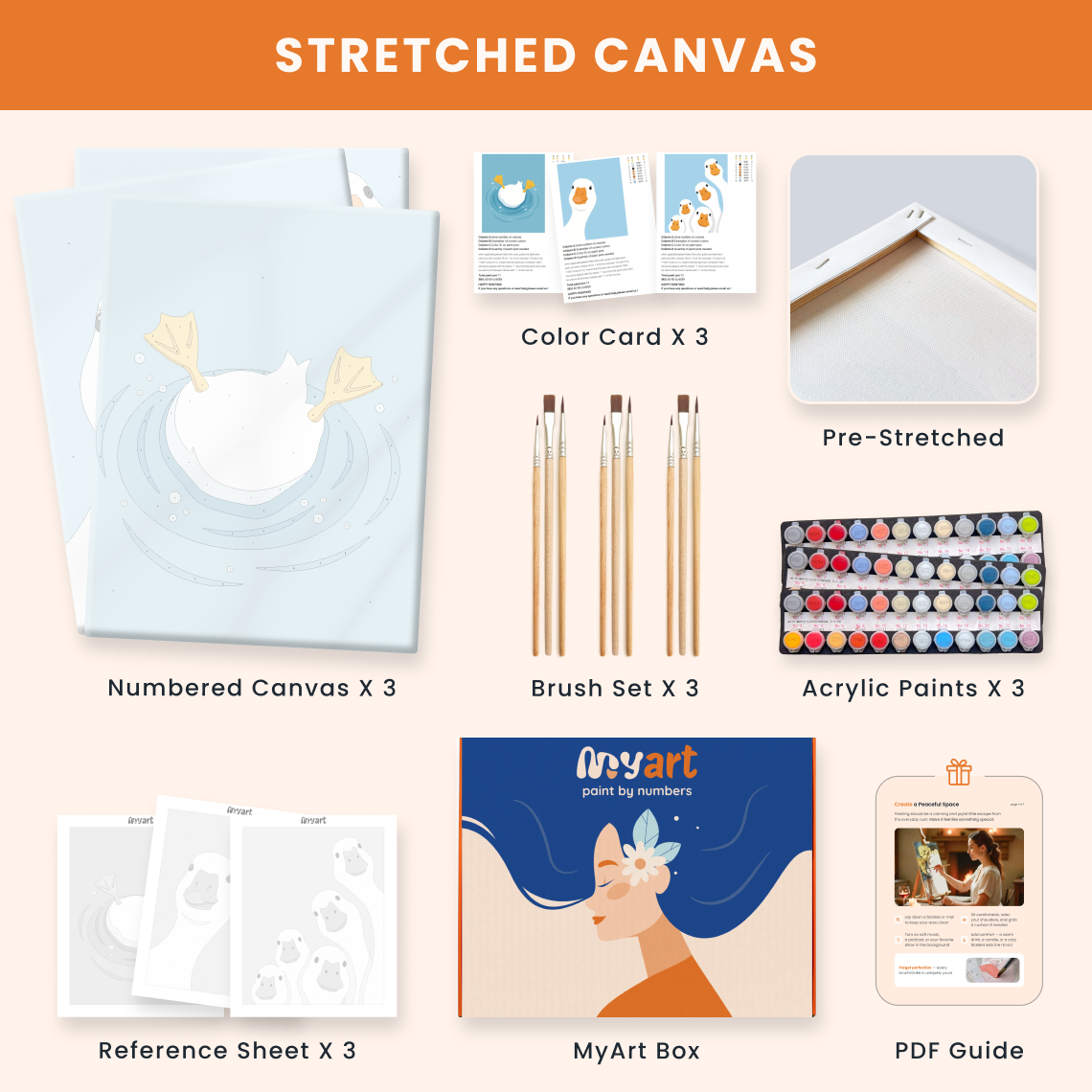 - Premium acrylic paint set (pre-mixed and numbered)