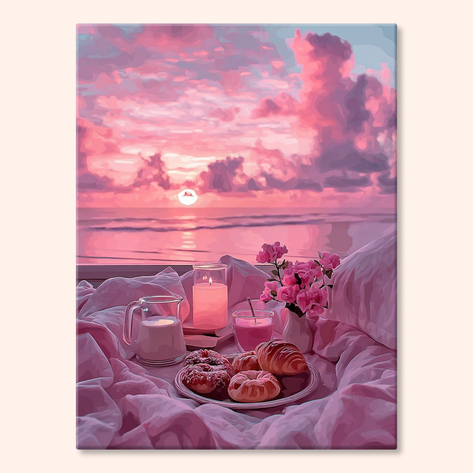 The canvas is pre-stretched on a wooden frame — ready to hang when finished.
