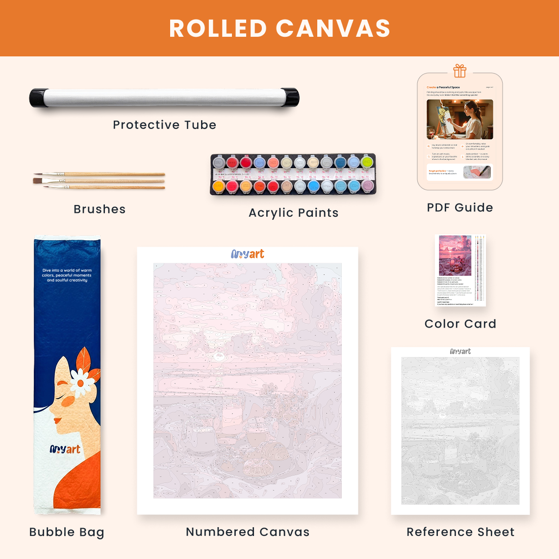- Premium acrylic paint set (pre-mixed and numbered)