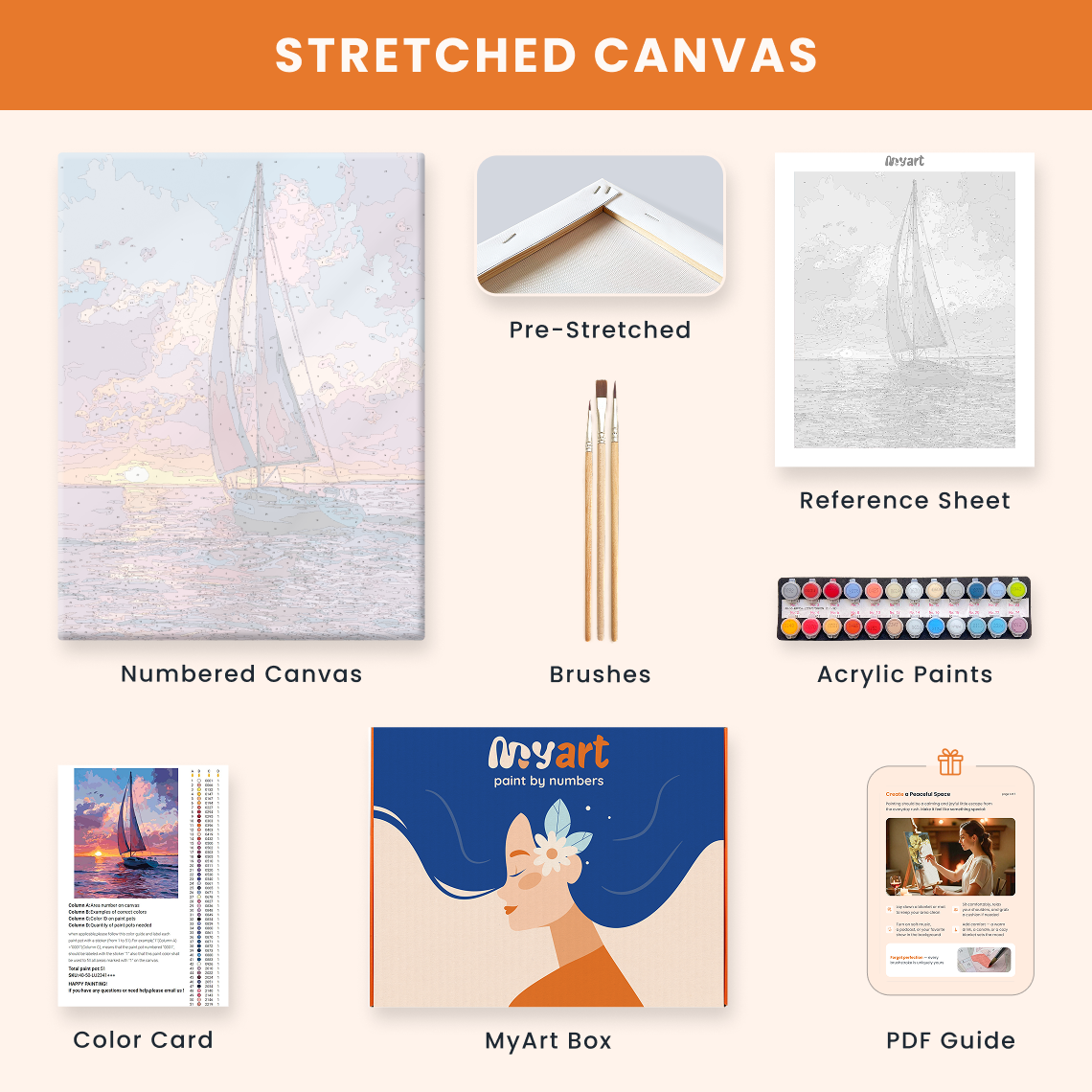 - Premium acrylic paint set (pre-mixed and numbered)