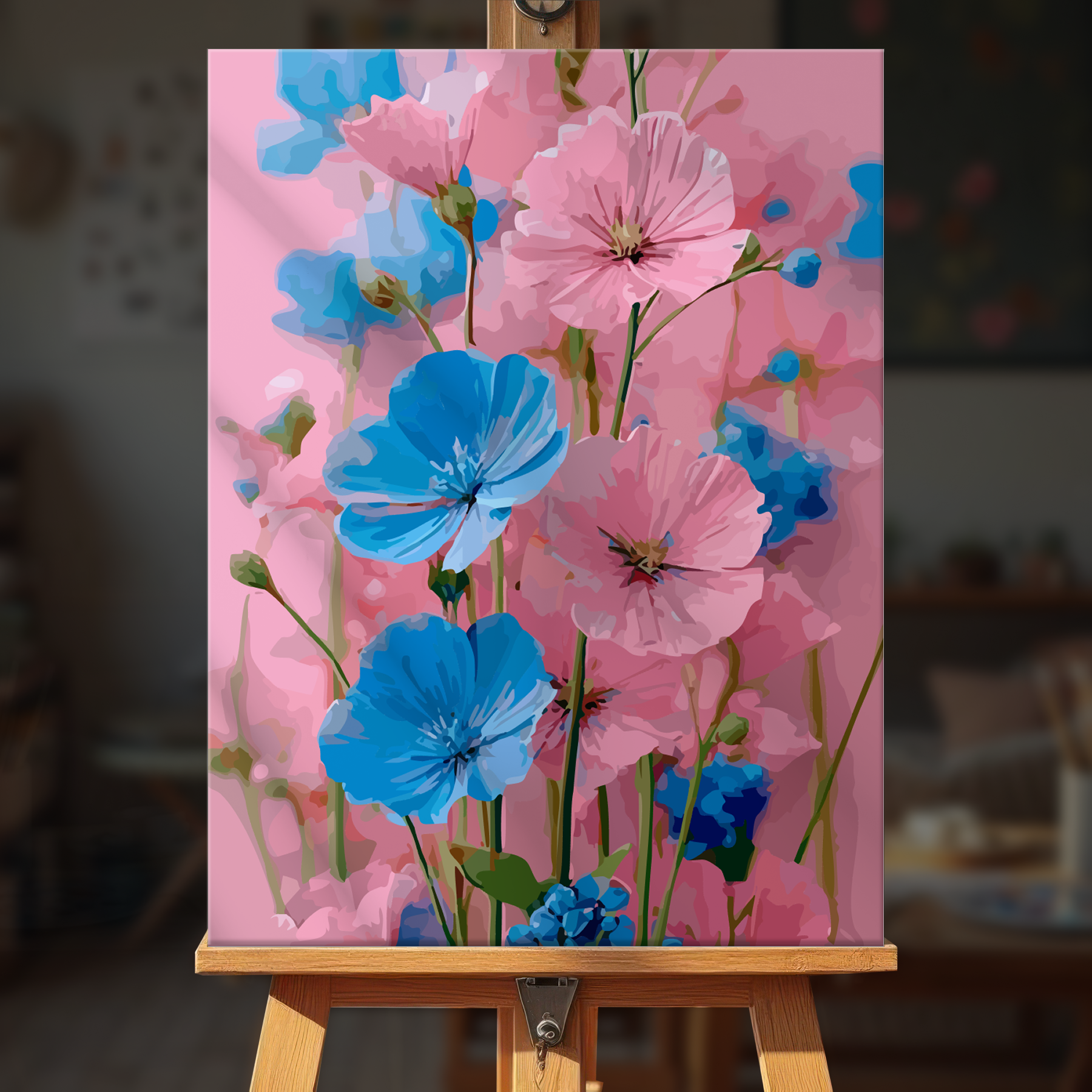 The canvas is pre-stretched on a wooden frame — ready to hang when finished.