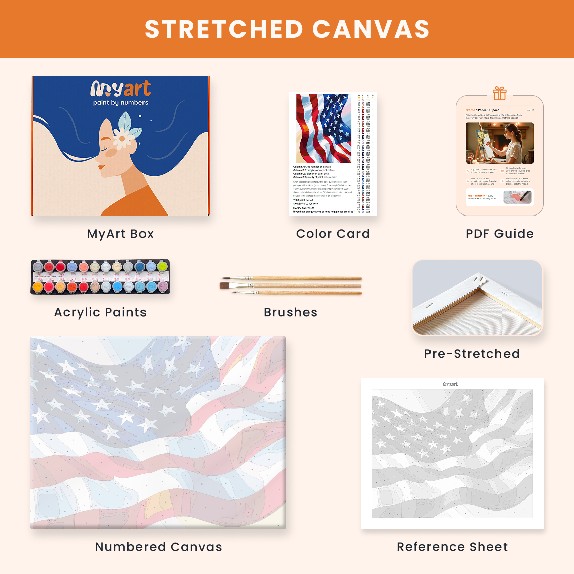 - Premium acrylic paint set (pre-mixed and numbered)
