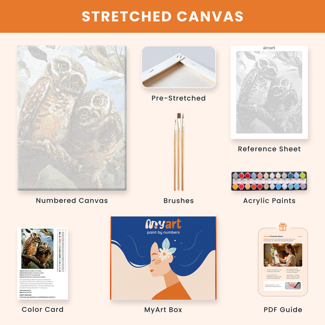 - Premium acrylic paint set (pre-mixed and numbered)