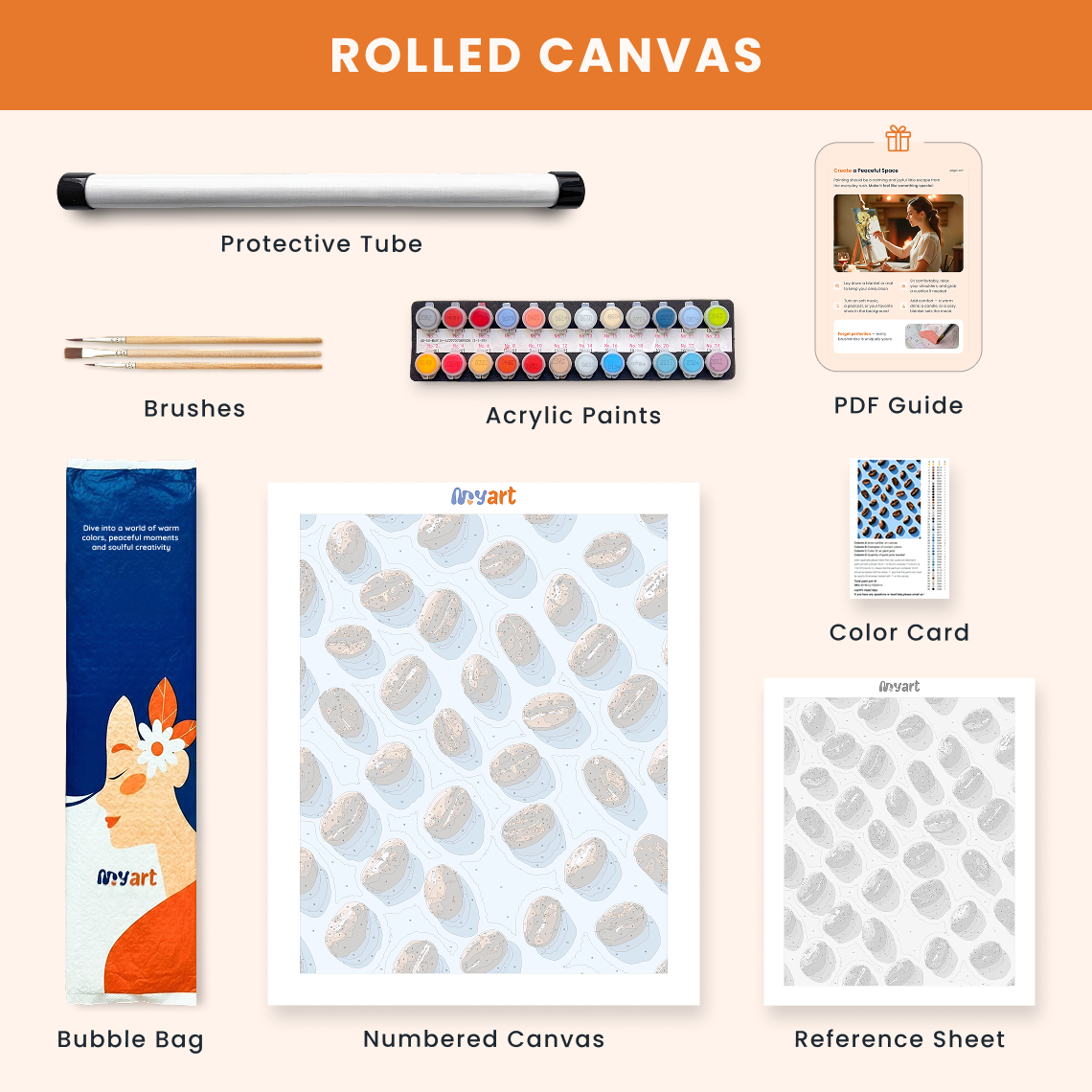 - Premium acrylic paint set (pre-mixed and numbered)