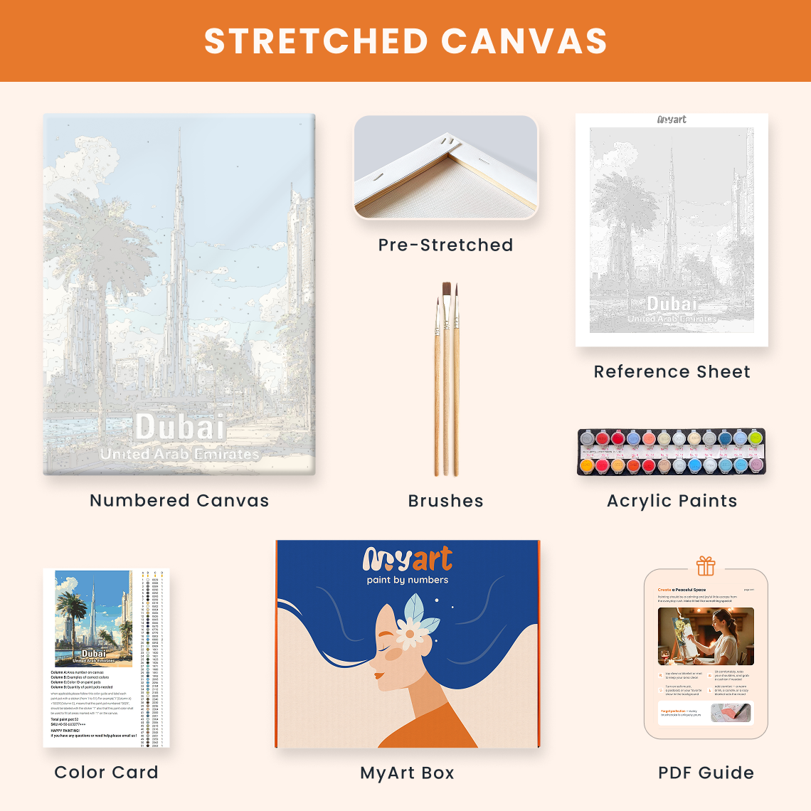 - Premium acrylic paint set (pre-mixed and numbered)