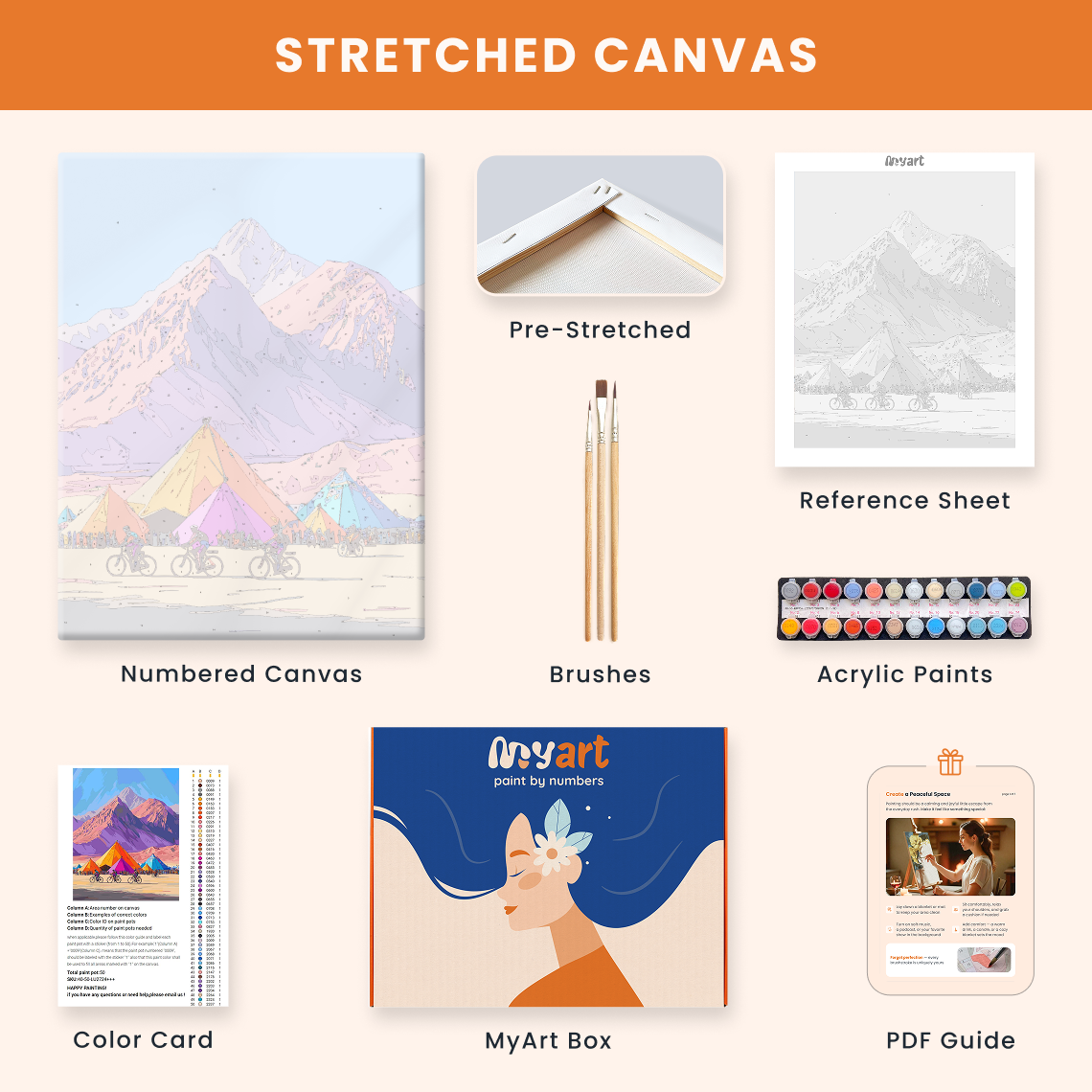 - Premium acrylic paint set (pre-mixed and numbered)