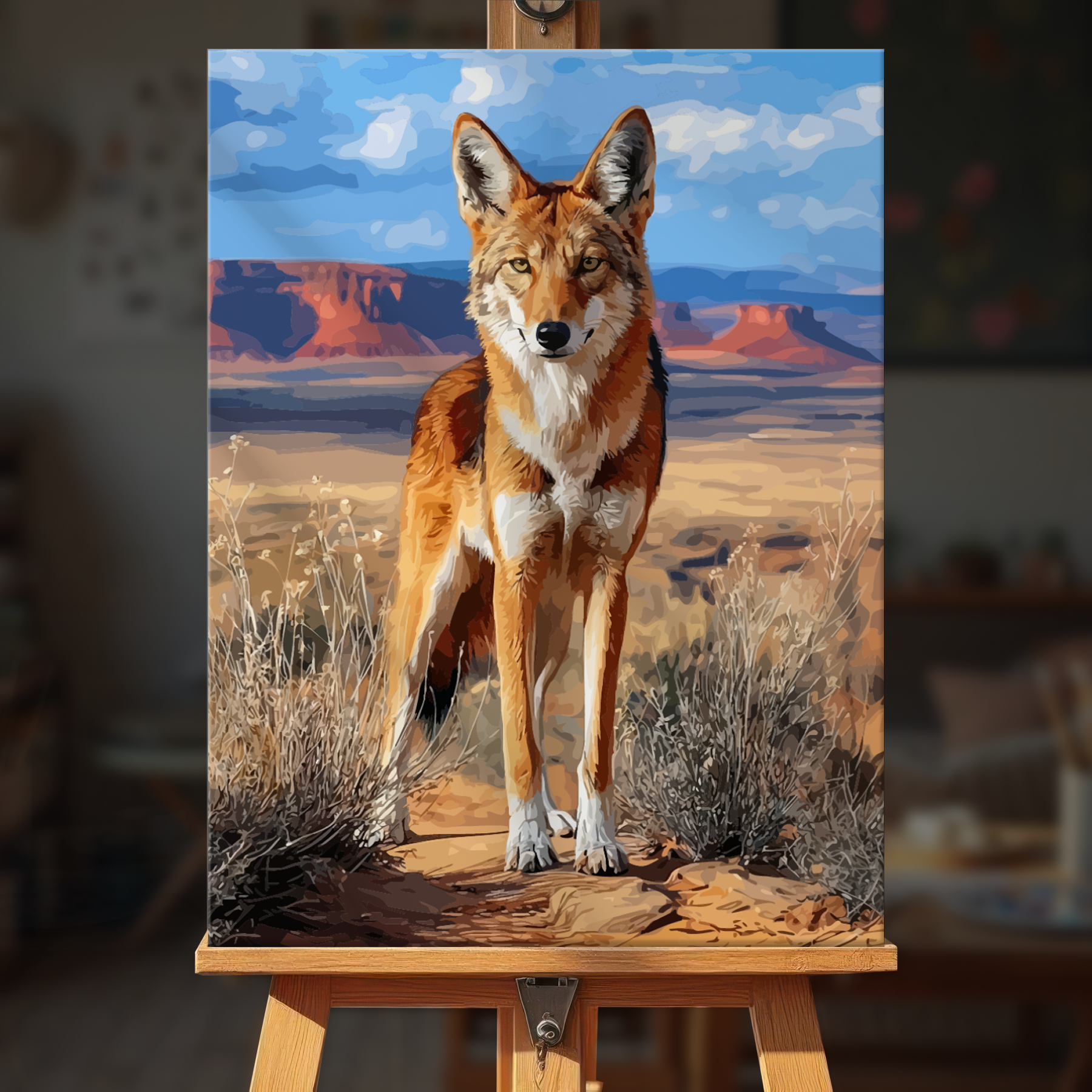 The canvas is pre-stretched on a wooden frame — ready to hang when finished.