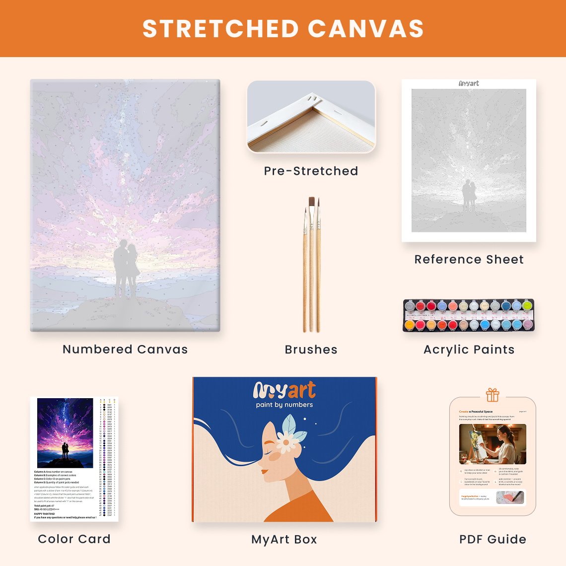 - Premium acrylic paint set (pre-mixed and numbered)