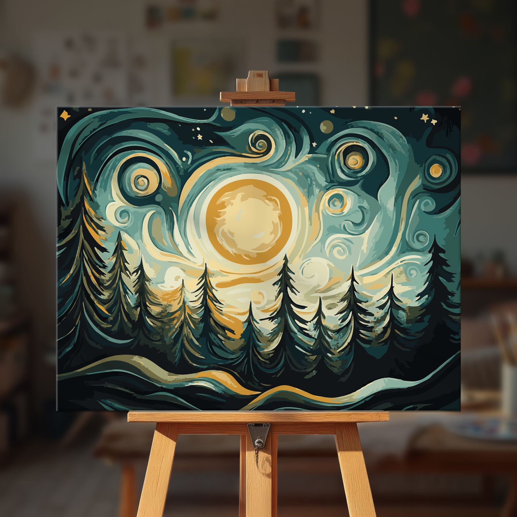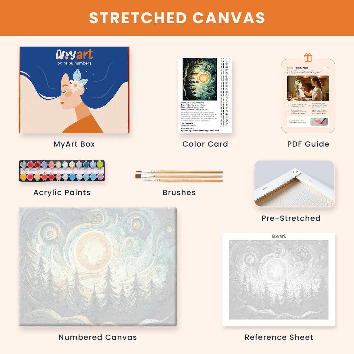 The canvas is pre-stretched on a wooden frame โ ready to hang when finished.