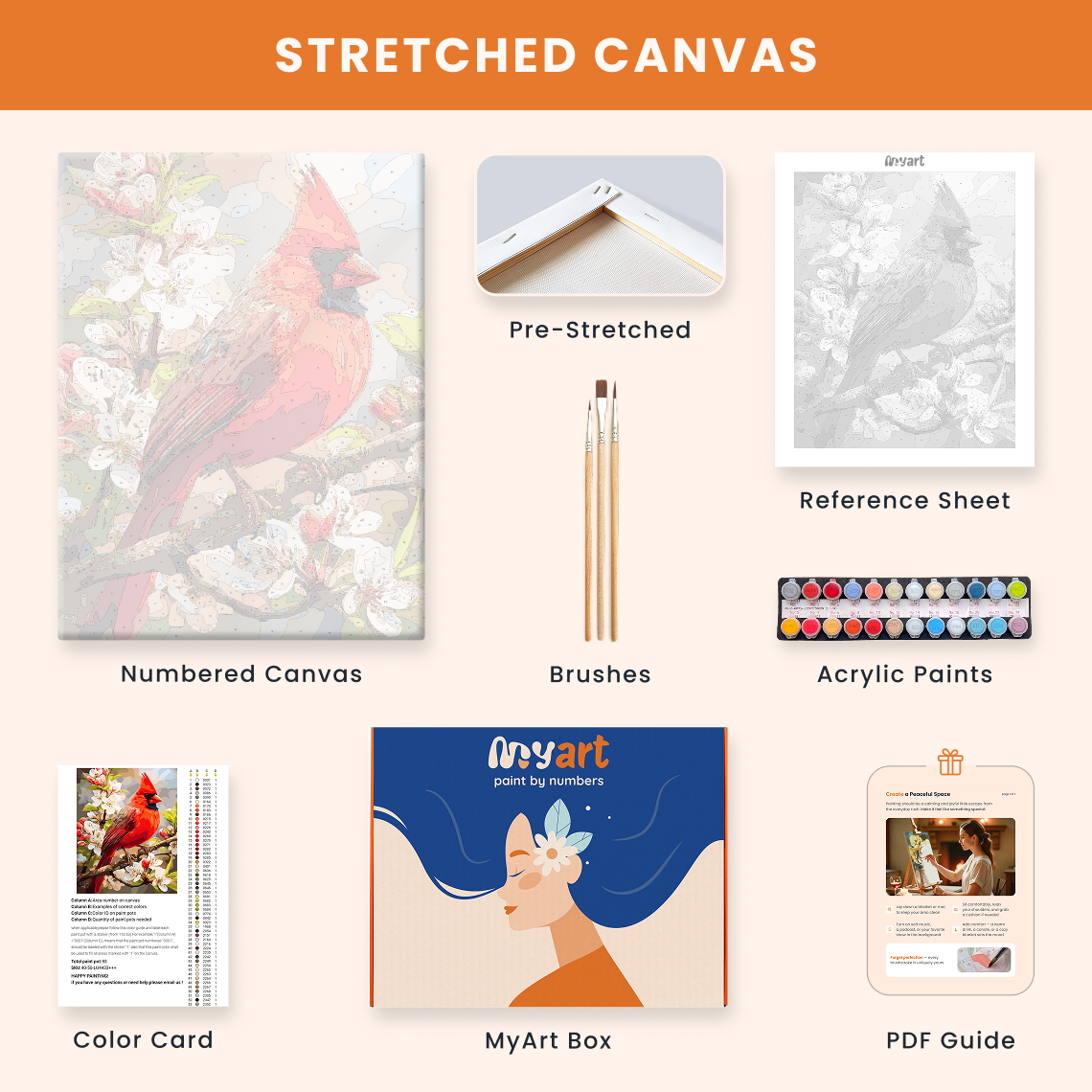 - Premium acrylic paint set (pre-mixed and numbered)