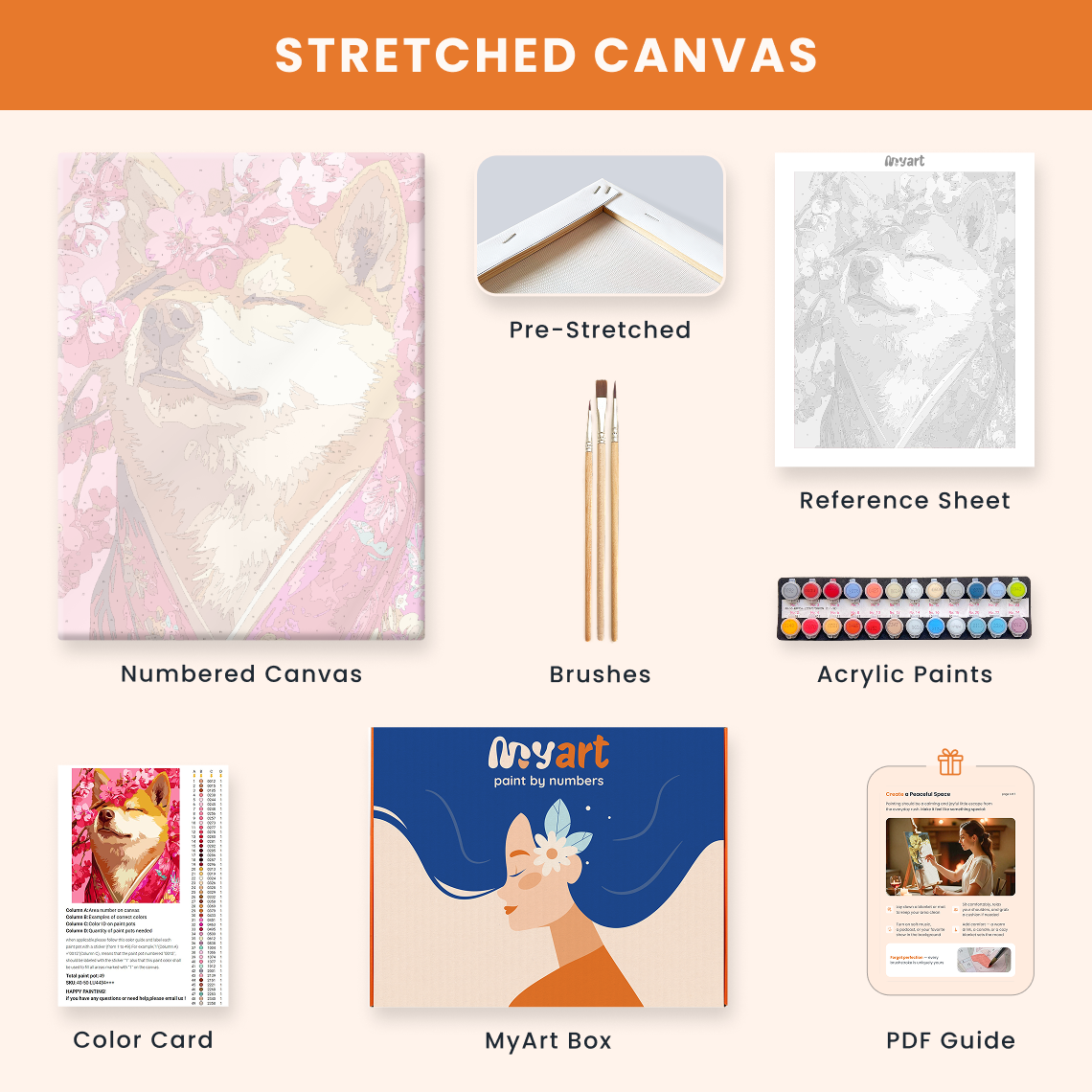 - Premium acrylic paint set (pre-mixed and numbered)