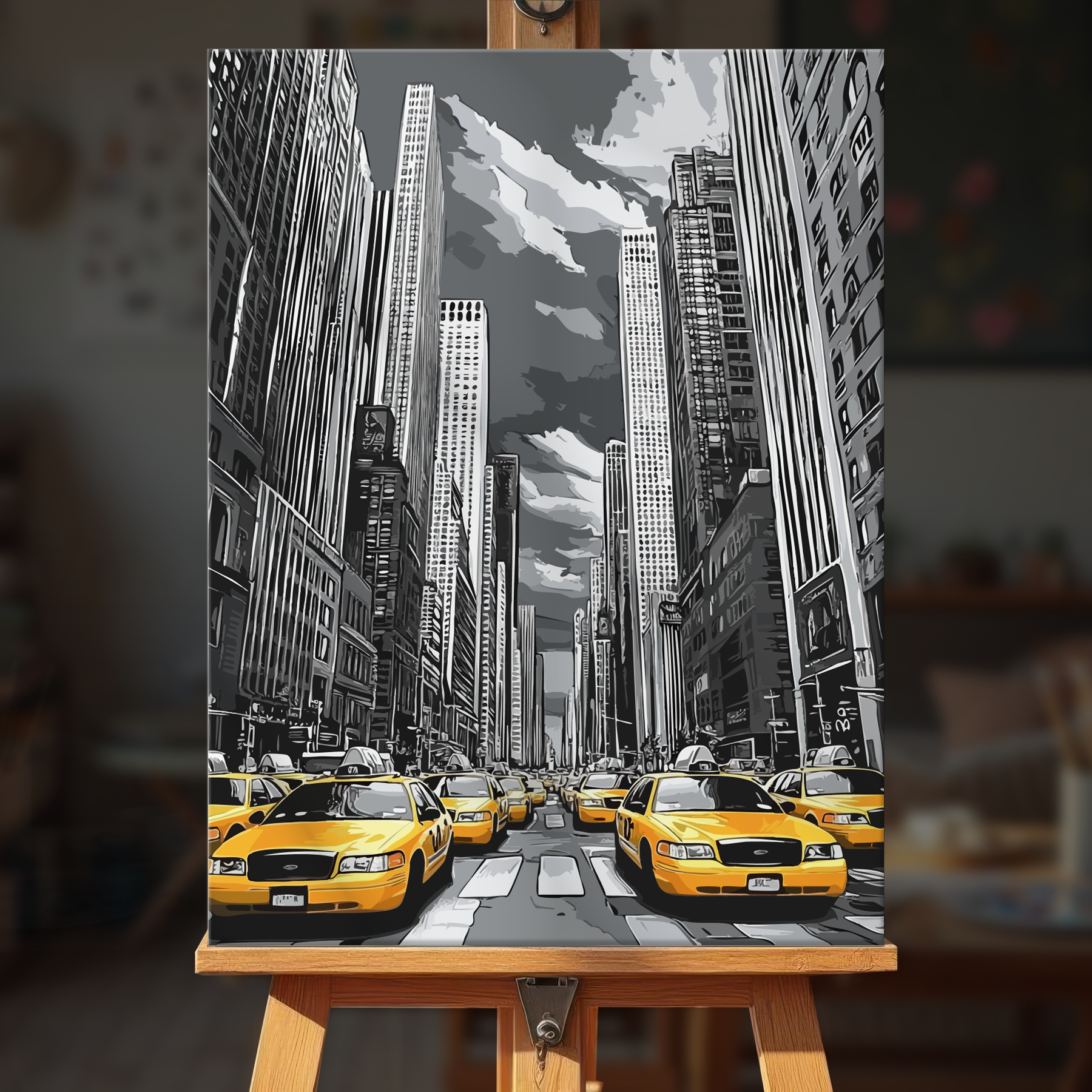 The canvas is pre-stretched on a wooden frame — ready to hang when finished.