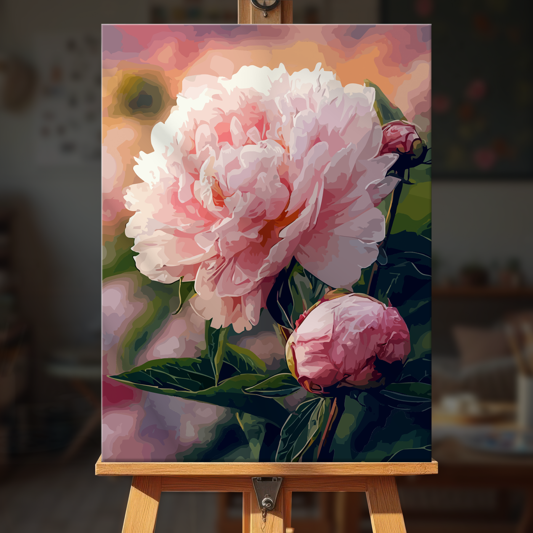 The canvas is pre-stretched on a wooden frame — ready to hang when finished.
