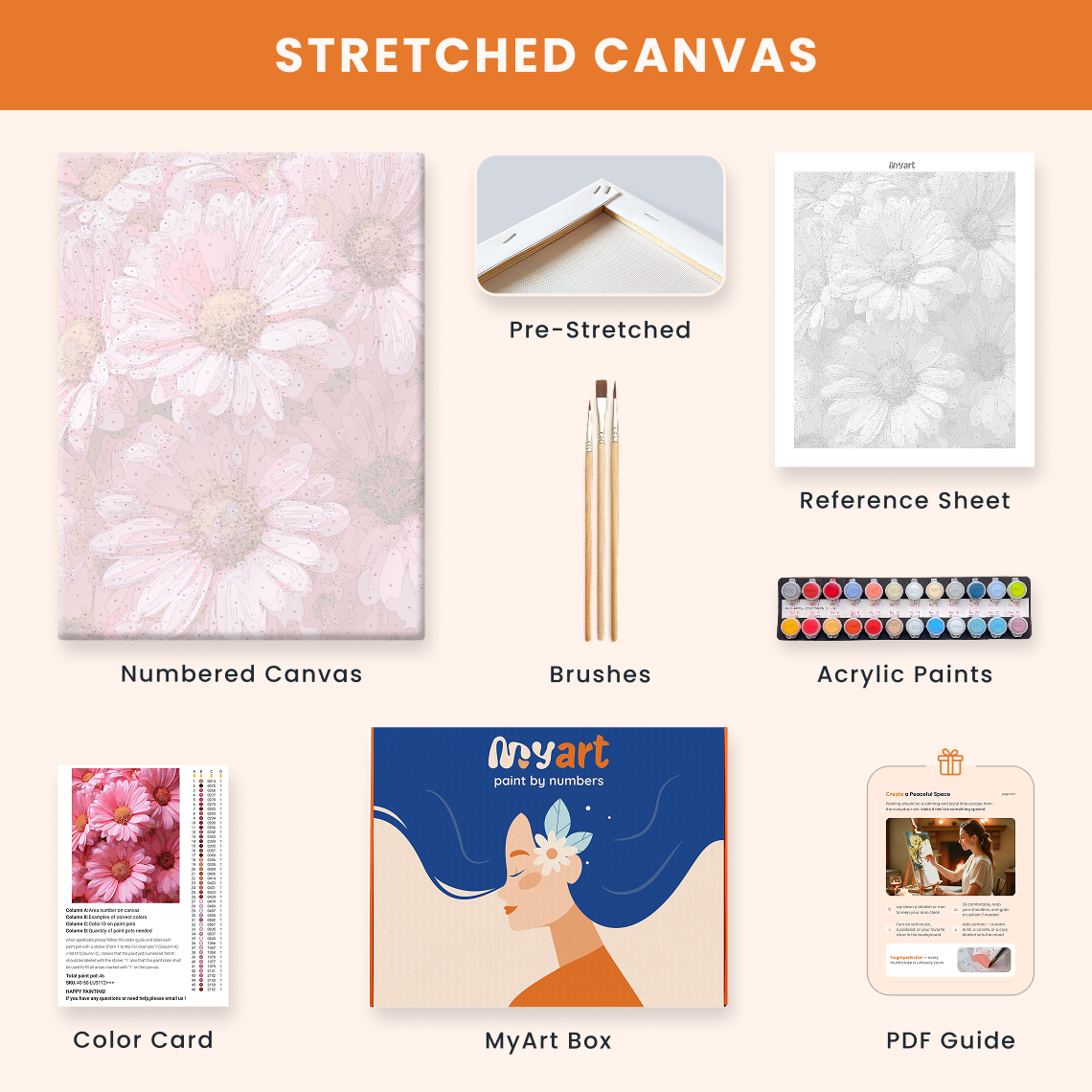- Premium acrylic paint set (pre-mixed and numbered)