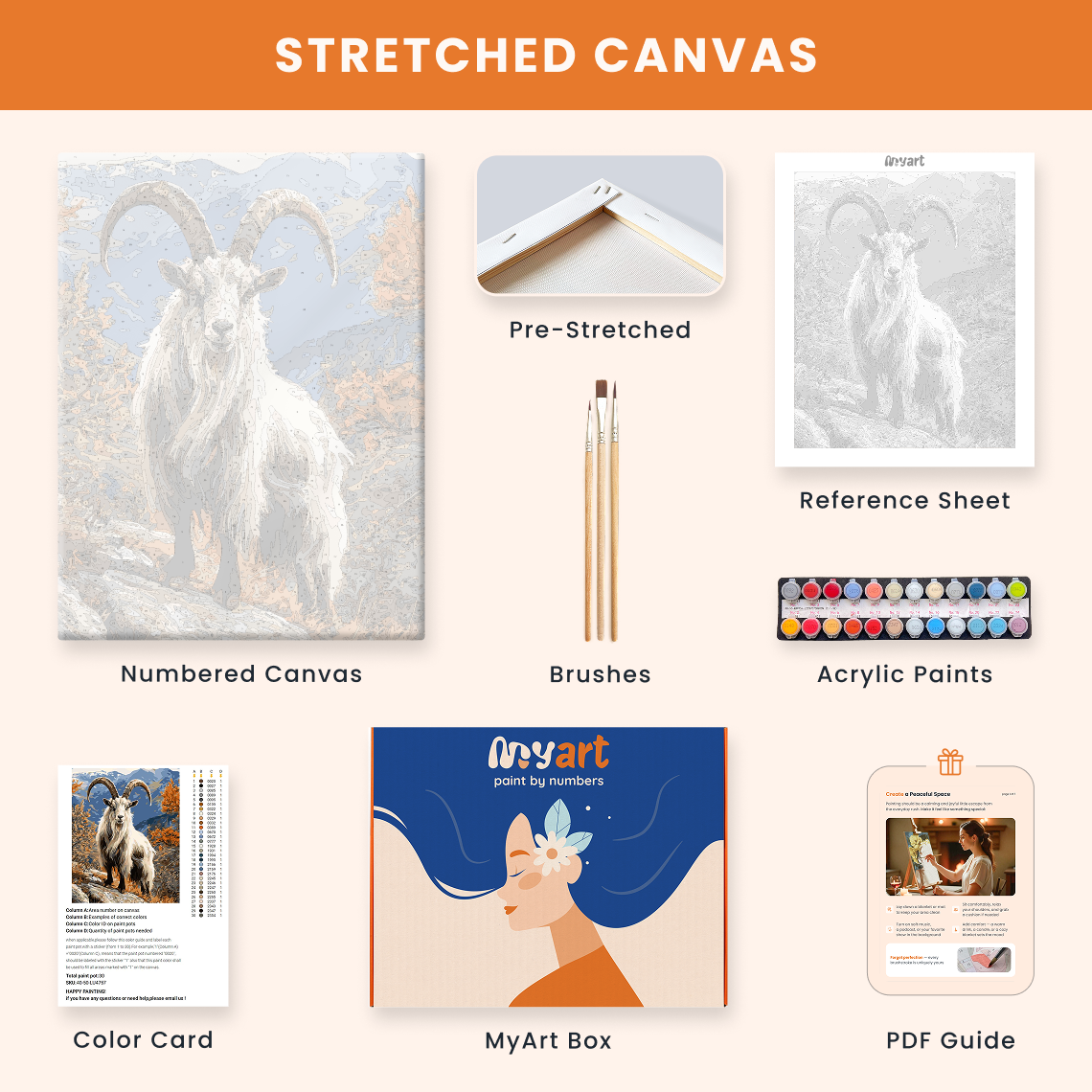 - Premium acrylic paint set (pre-mixed and numbered)