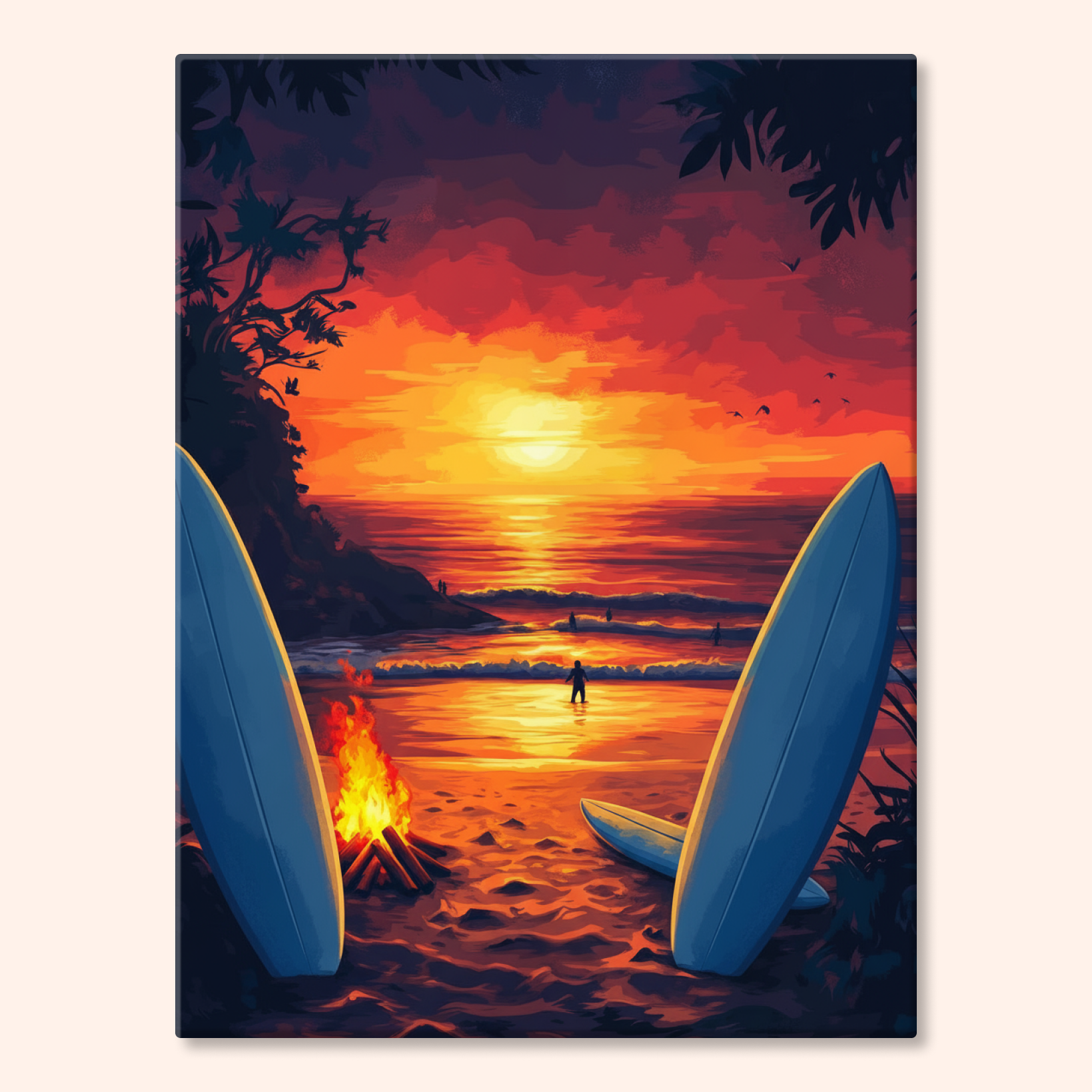 The canvas is pre-stretched on a wooden frame — ready to hang when finished.