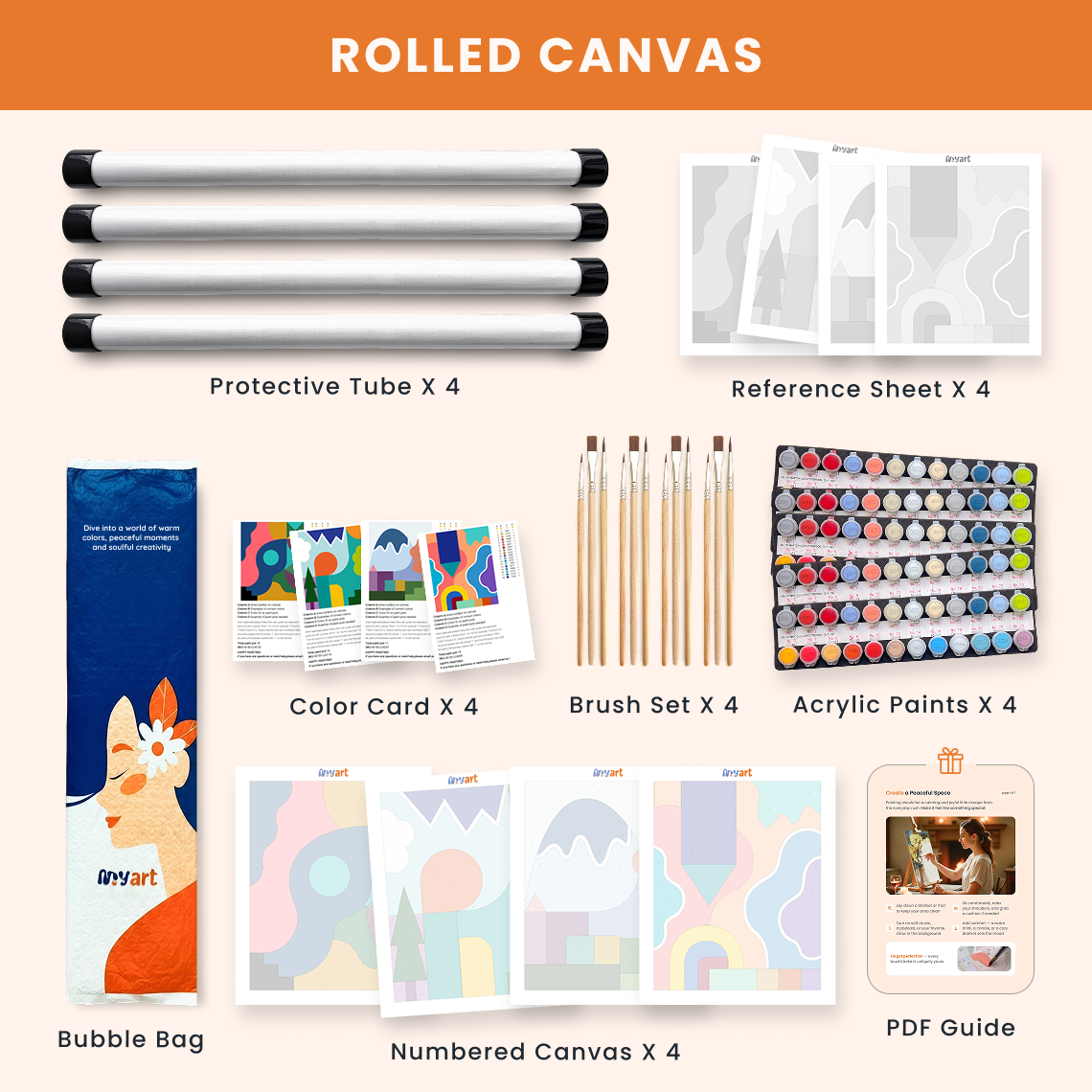 - Premium acrylic paint set (pre-mixed and numbered)