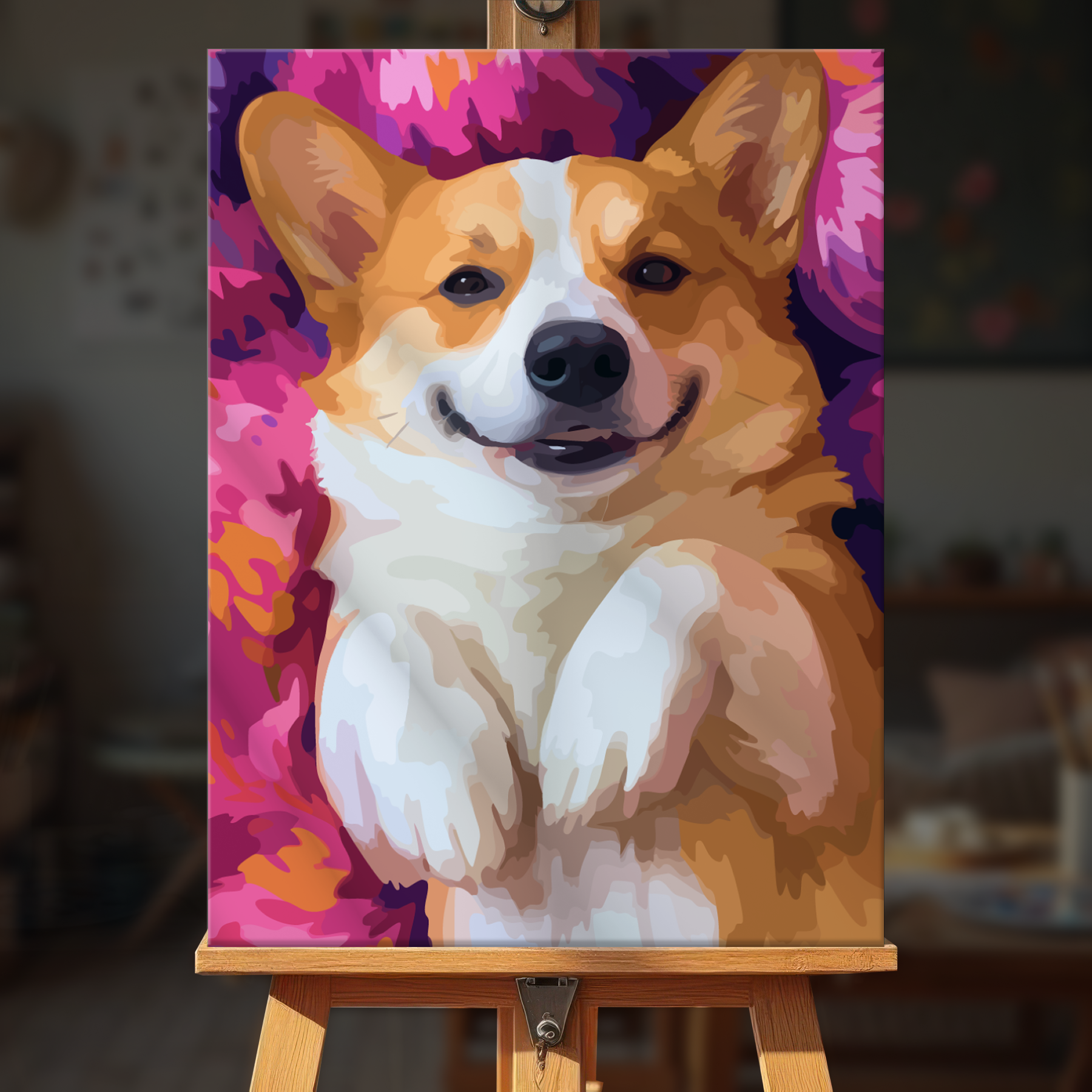 The canvas is pre-stretched on a wooden frame — ready to hang when finished.