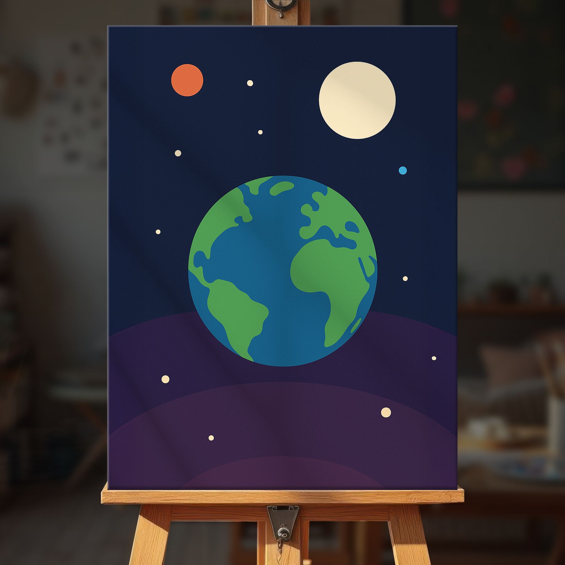 The canvas is pre-stretched on a wooden frame — ready to hang when finished.