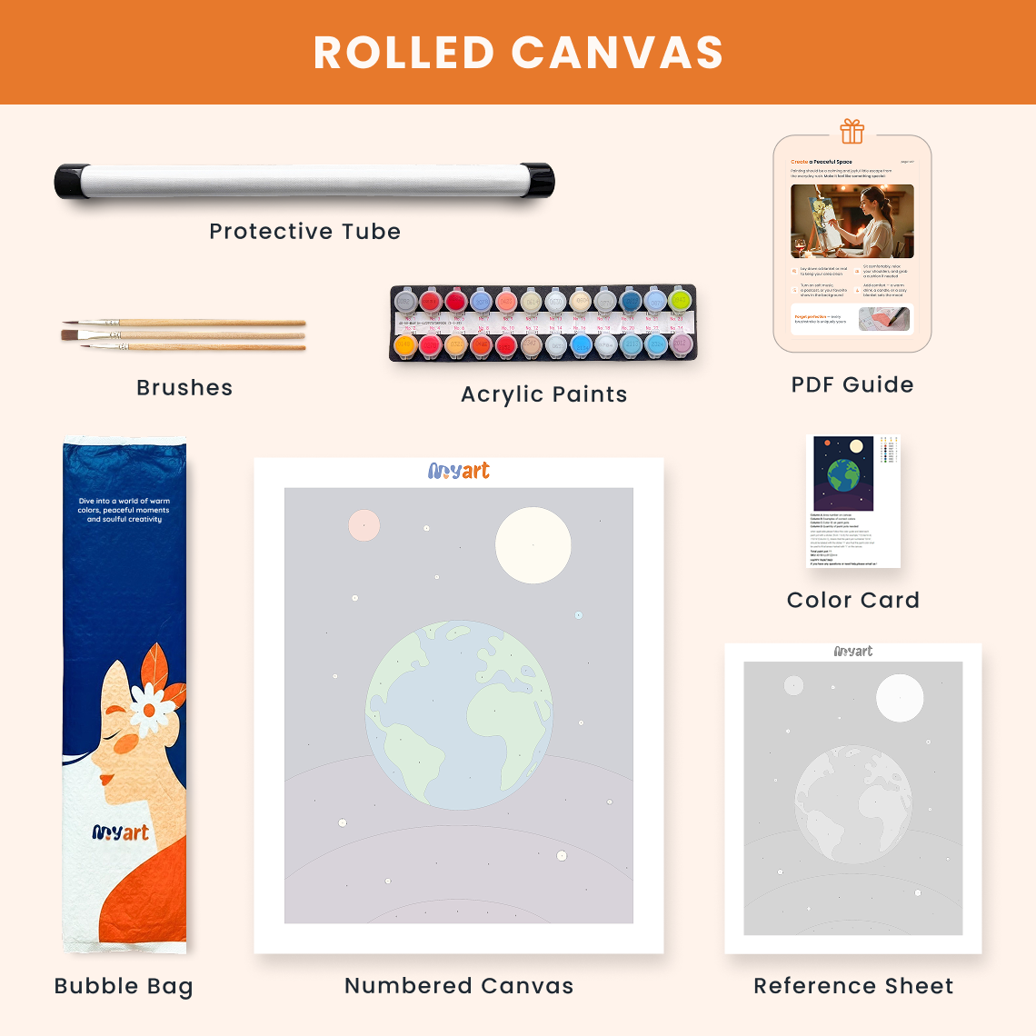- Premium acrylic paint set (pre-mixed and numbered)