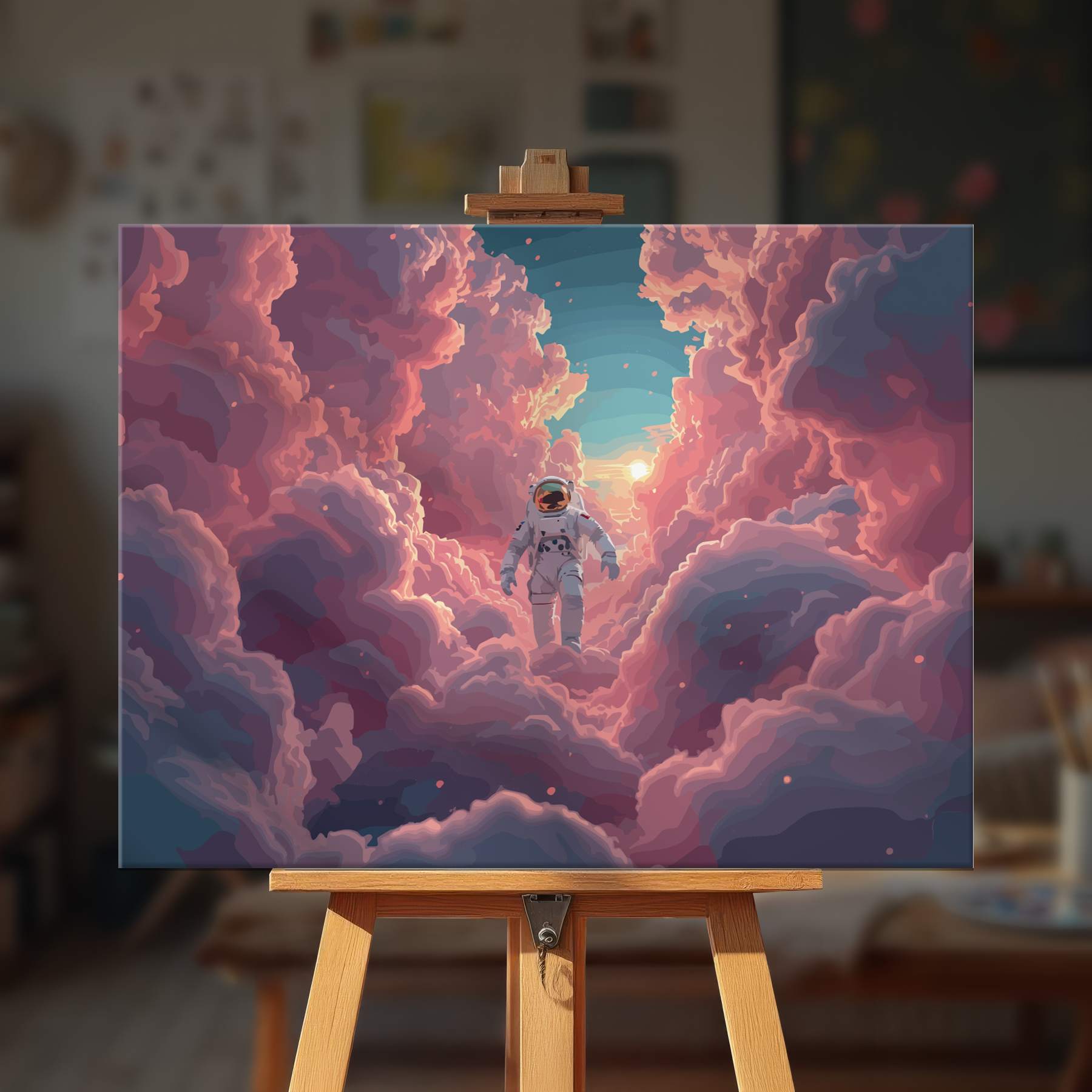 The canvas is pre-stretched on a wooden frame — ready to hang when finished.
